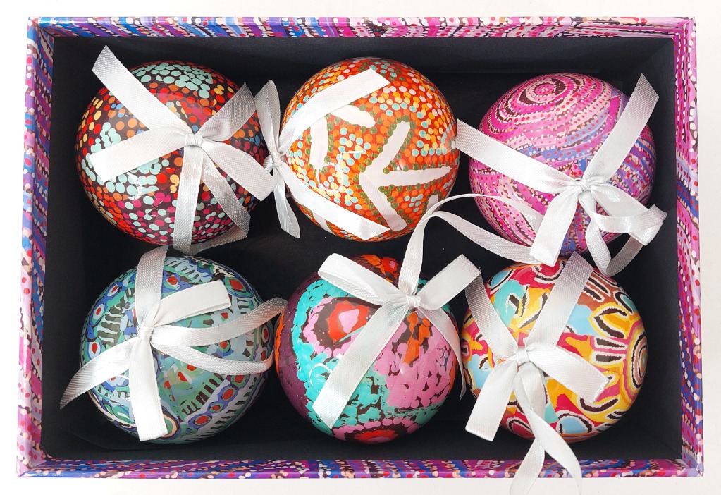 CHRISTMAS BAUBLES - HANGING, 80mmD - ABORIGINAL ART - WARLUK - AUSTRALIA QTY 6