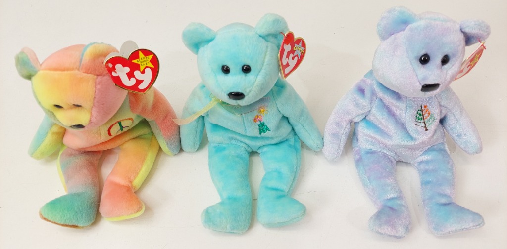 Assorted TY Beanie Babies QTY 6. Sakura, Millennium, July, Maple Style 4600, Ariel and, Peace.