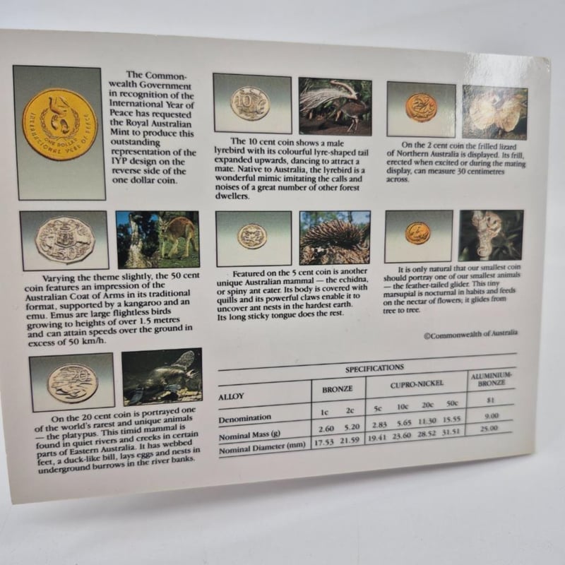 AUSTRALIAN COIN Australian Post 1986 Year Of The Peace Seven Decimal Coin Set. Condition: Uncirculated587658+46