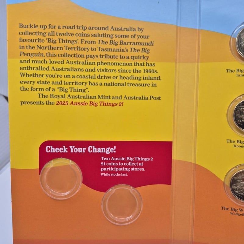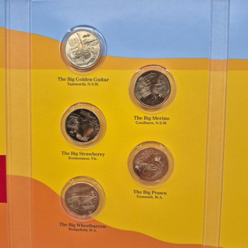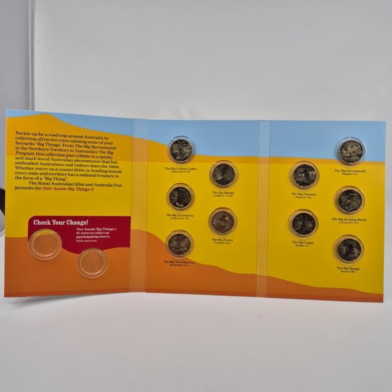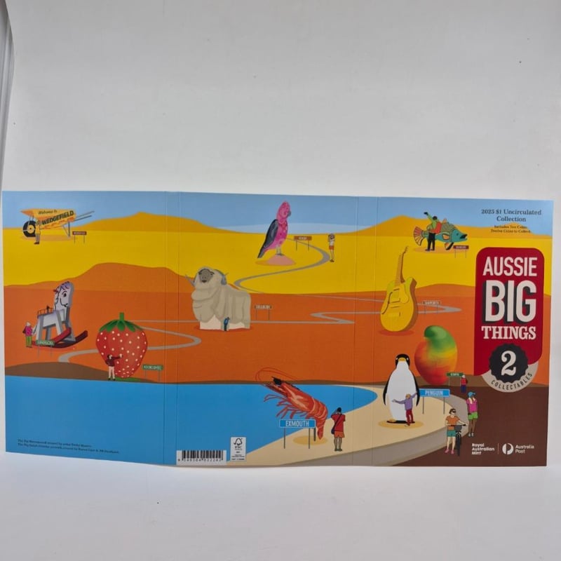 AUSTRALIAN COIN Royal Australian Mint 2025 Aussie Big Things 2 Complete Set In Special Folder. Condition: Uncirculated587658+85