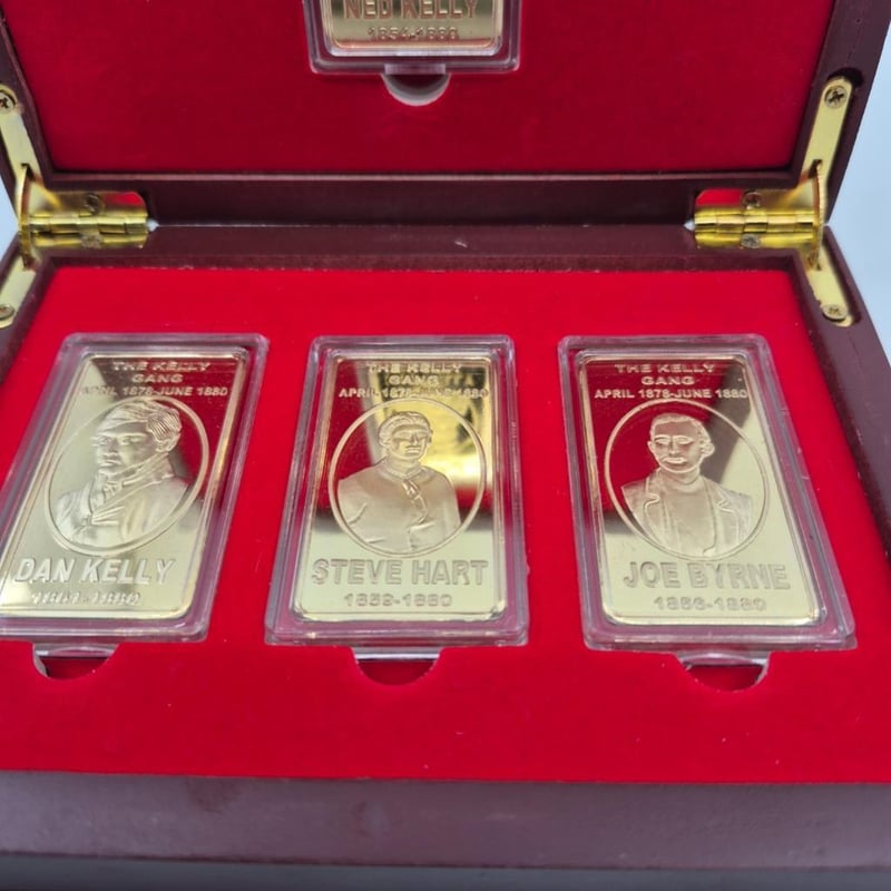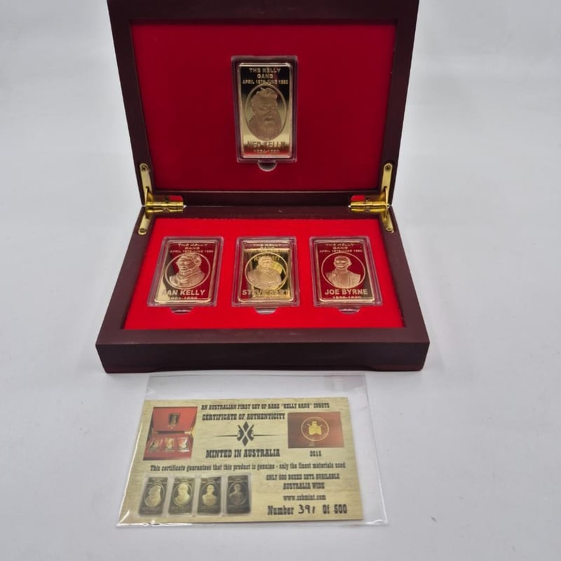AUSTRALIAN COIN Australian Limited Edition First Set Of Rare Kelly Gang 4 One Ounce In 24Ct Gold Plated Ingots Set. Condition: UNC-PROOF587658+115