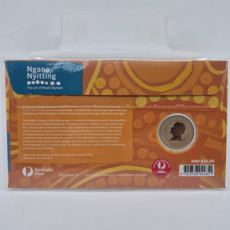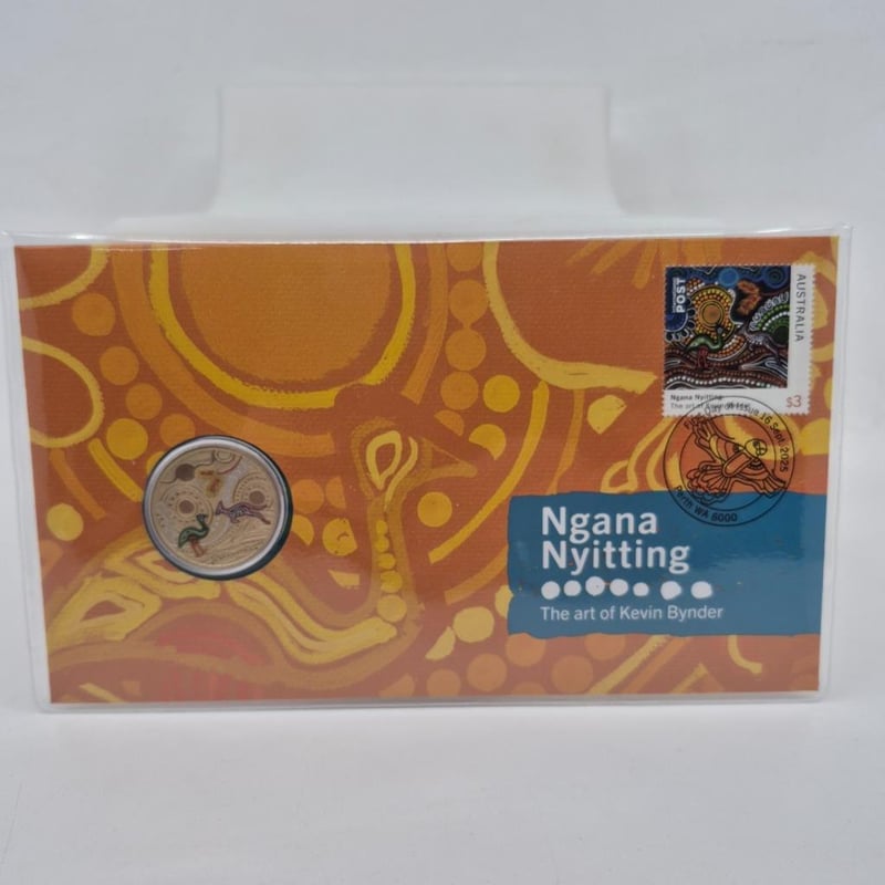 AUSTRALIAN COIN Australian Post 2025 Ngana Nyitting The Art Of Kevin Byunder Colorised Coin And Stamp. Condition: Uncirculated587658+120