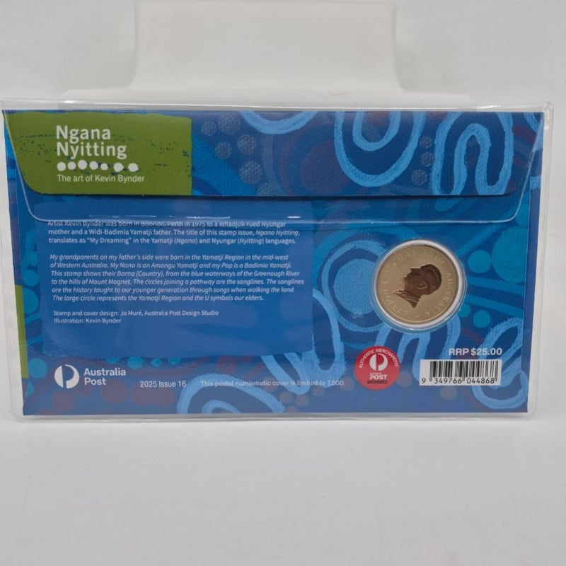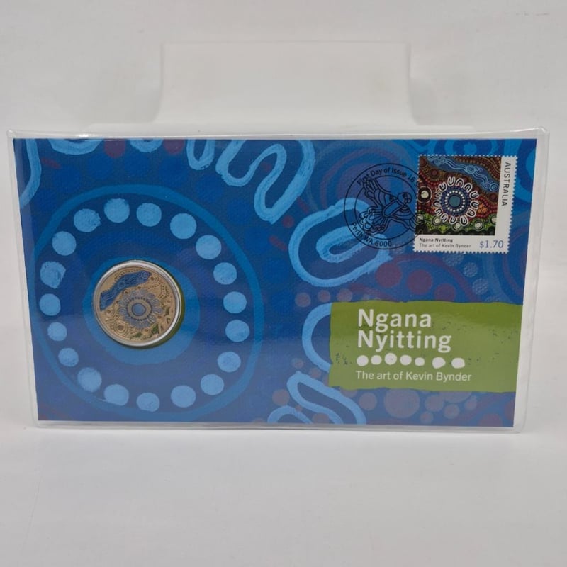 AUSTRALIAN COIN Australian Post 2025 Ngana Nyitting The Art Of Kevin Byunder Colorised Coin And Stamp. Condition: Uncirculated587658+122