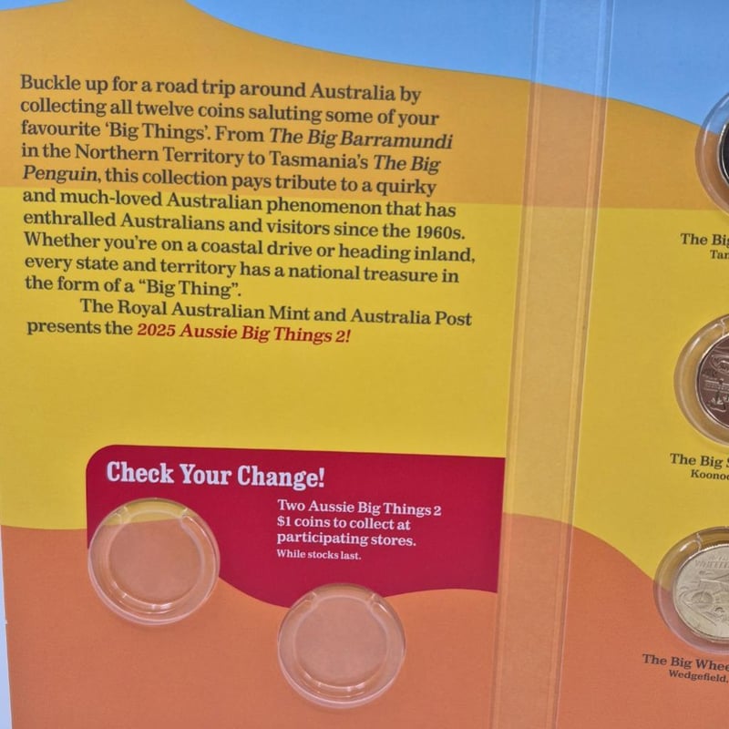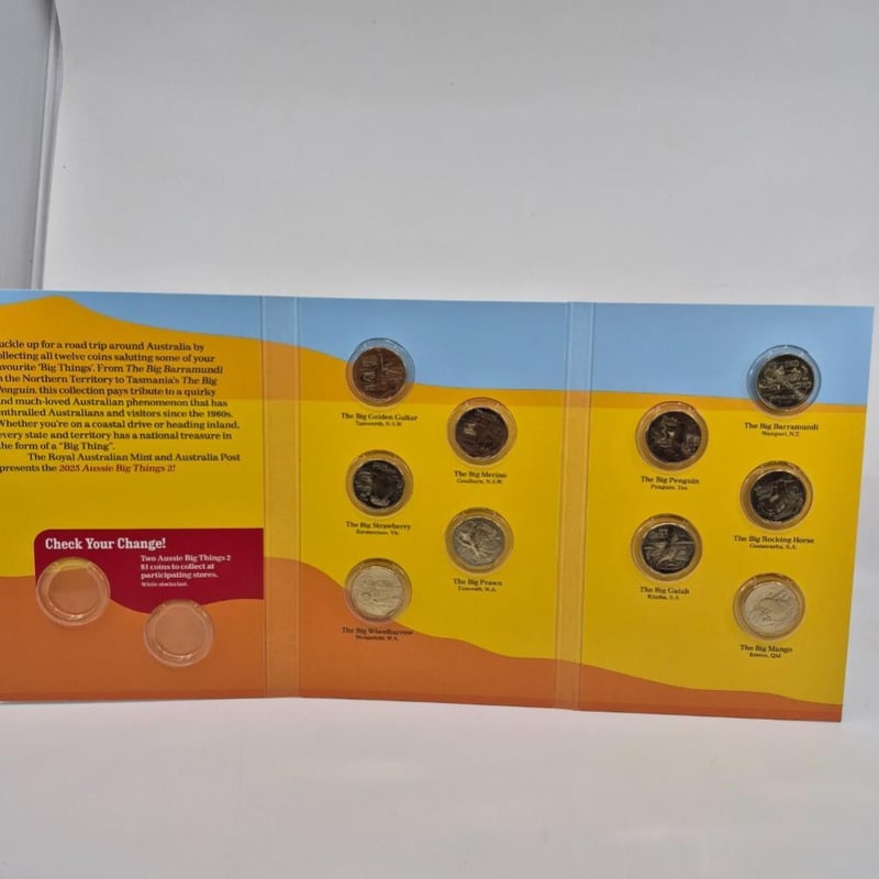 AUSTRALIAN COIN Royal Australian Mint 2025 Aussie Big Things 2 Complete Set In Special Folder. Condition: Uncirculated587658+133