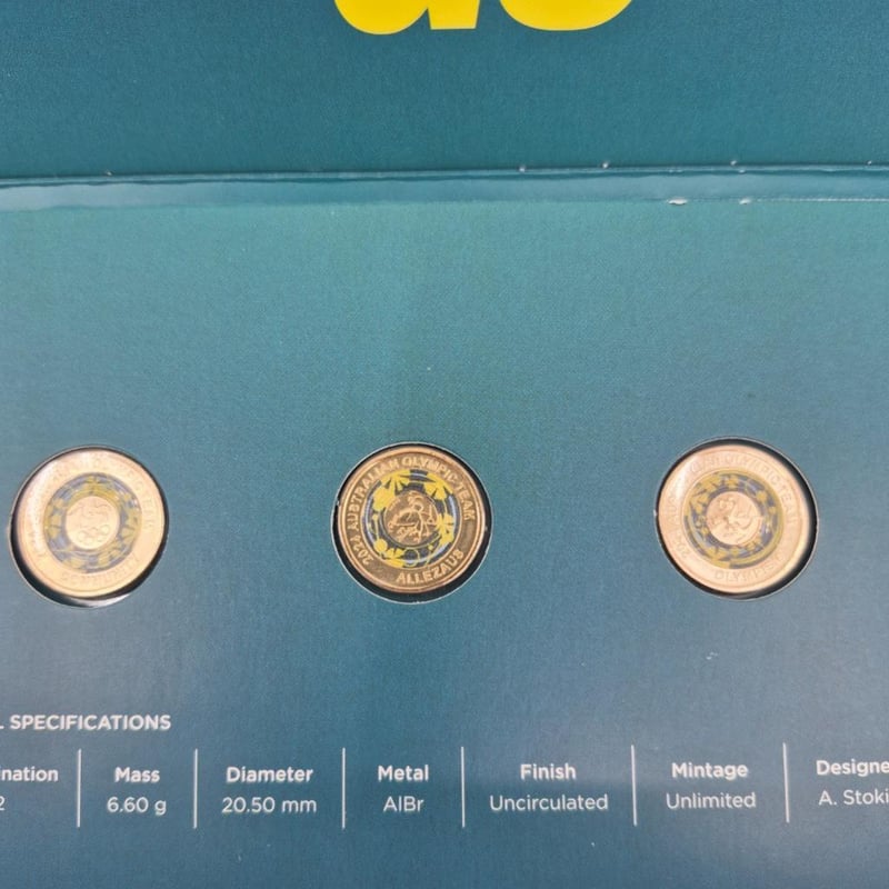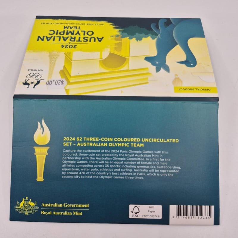AUSTRALIAN COIN Royal Australian Mint 2024 Olympic Team Three Colorised $2 Coin Set. Condition: Uncirculated587658+7