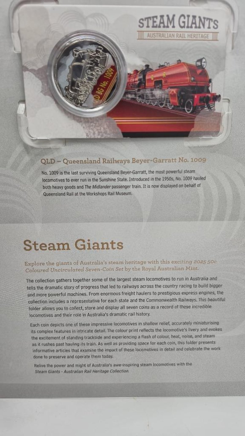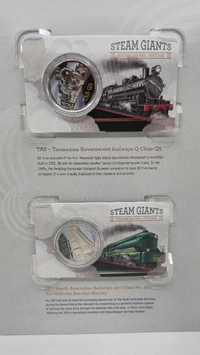 AUSTRALIAN COINRoyal Australian Mint 2025 Heritage Seven Steam Giants Colorised Coins Folder. Condition: Uncirculated +39