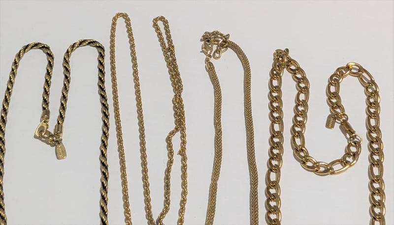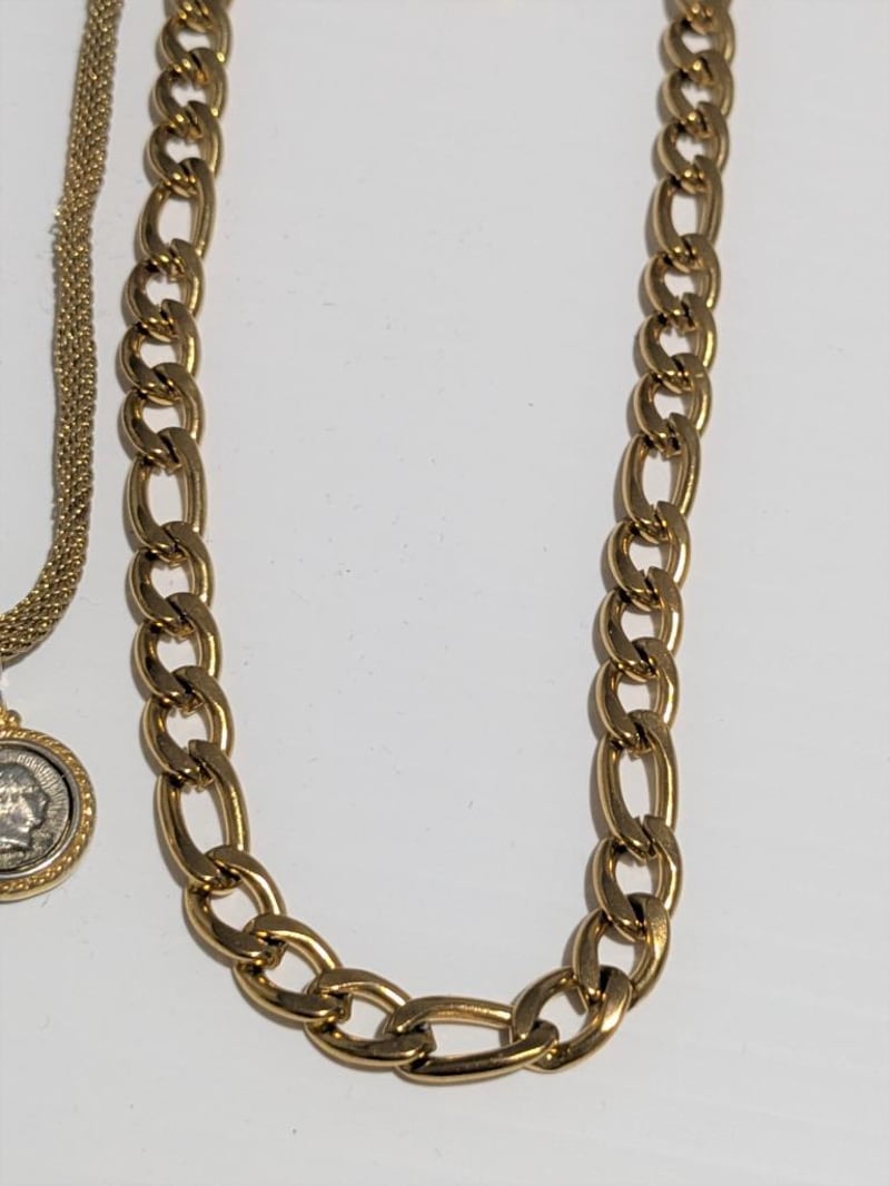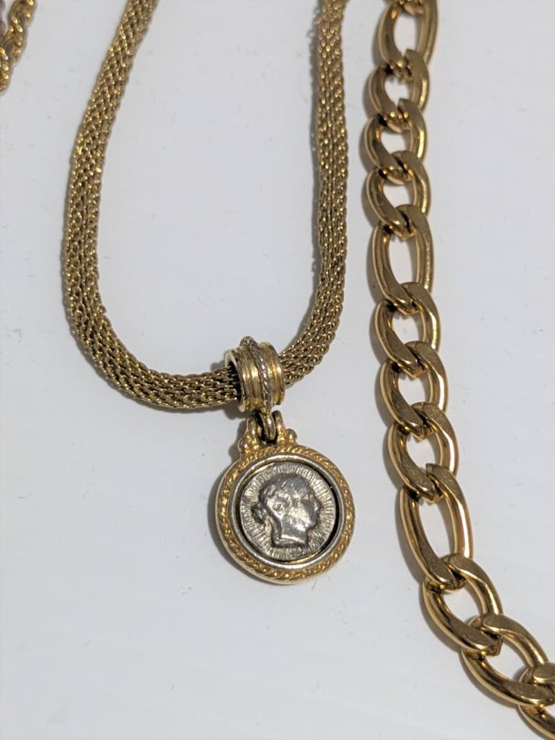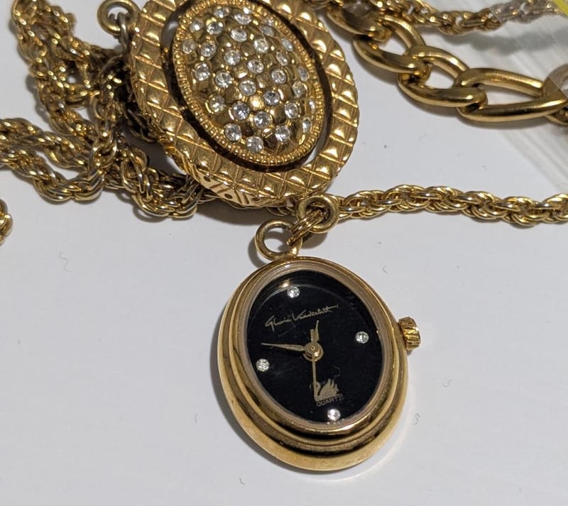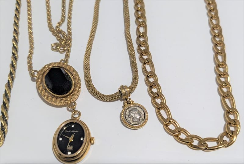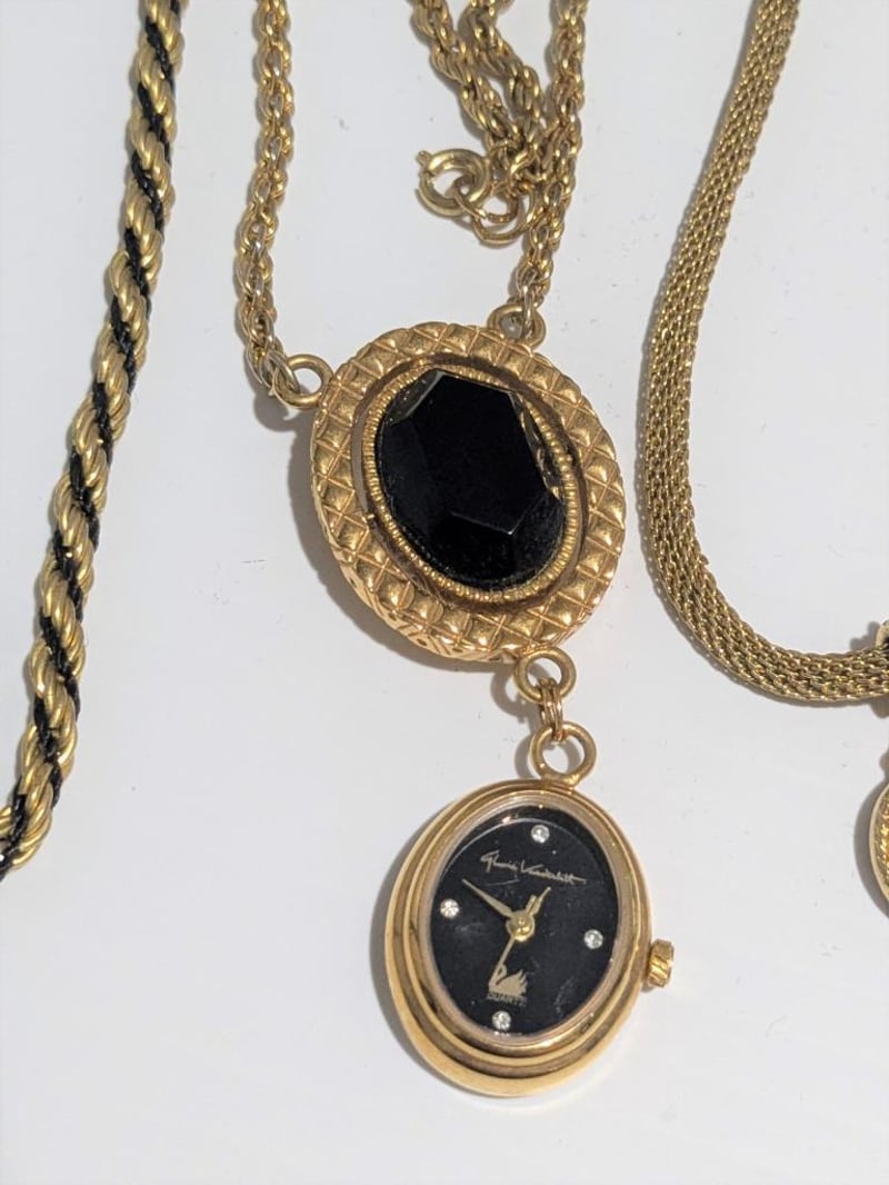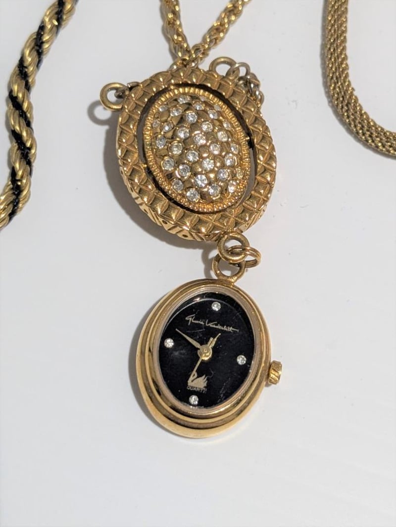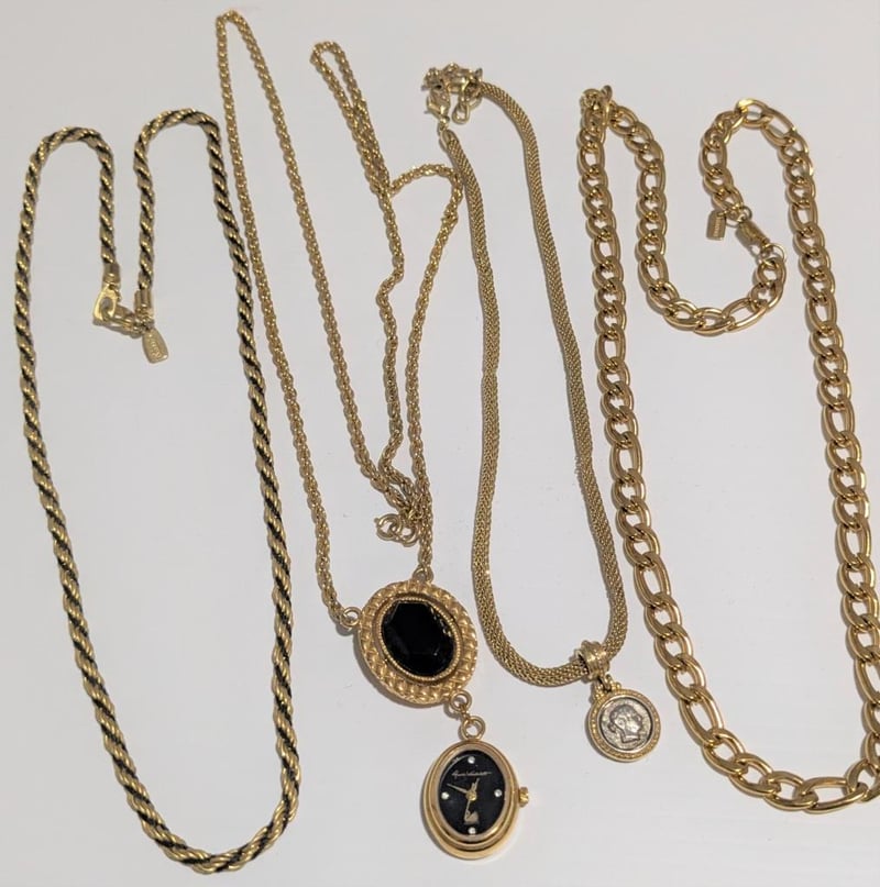 FAUX GOLD NECKLACES Qty Of 4, Includes Gloria Vanderbilt Double Sided Watch Pendant Condition: Good - Refer To Images +9