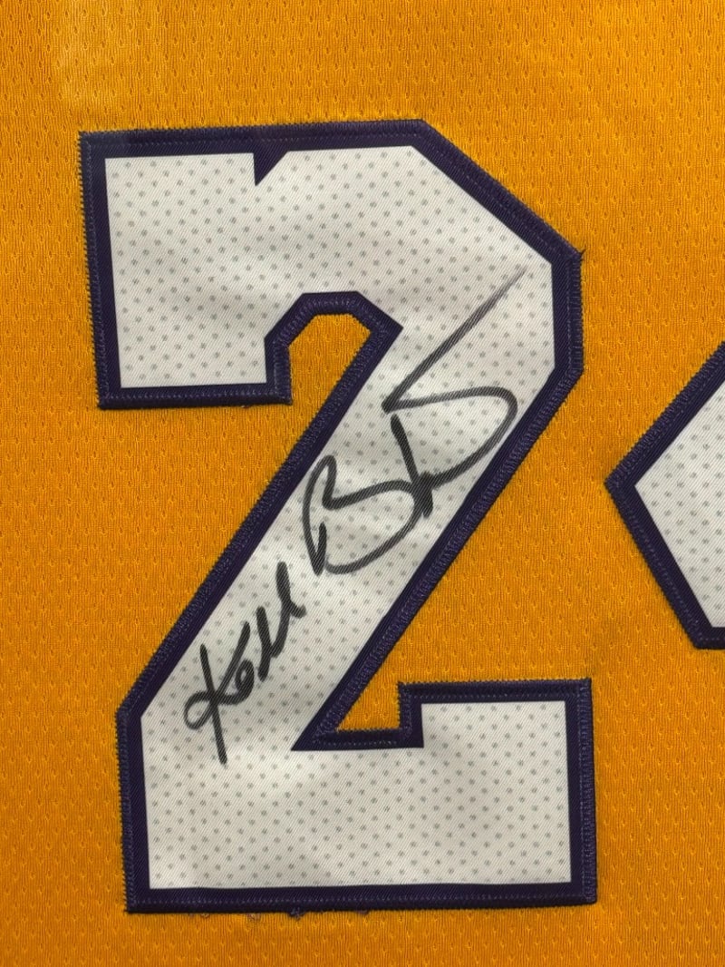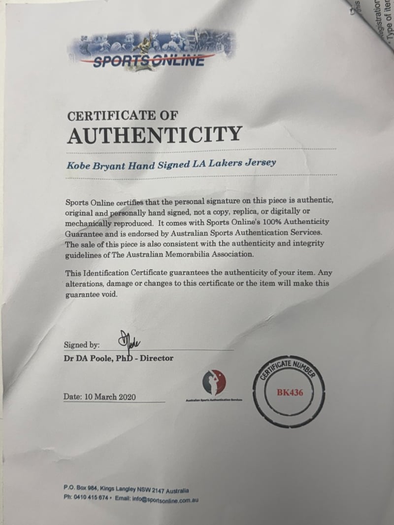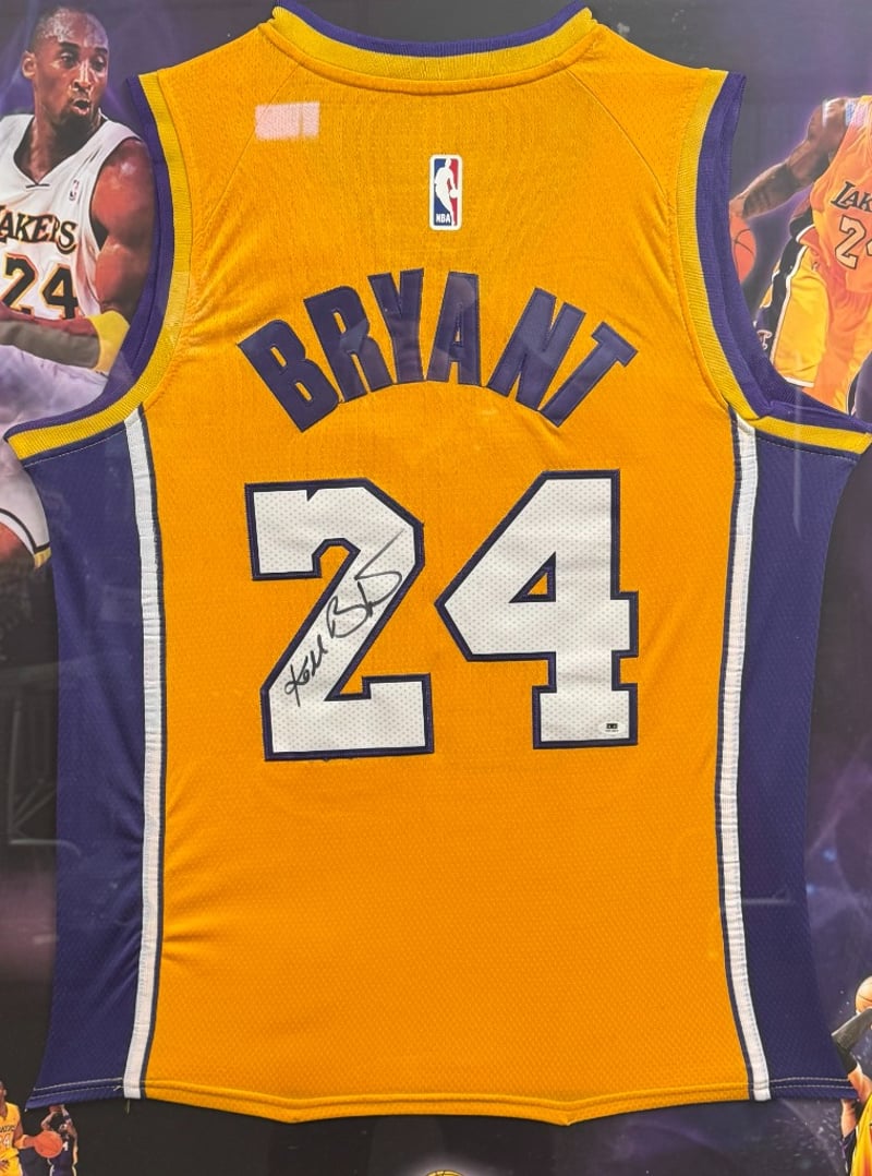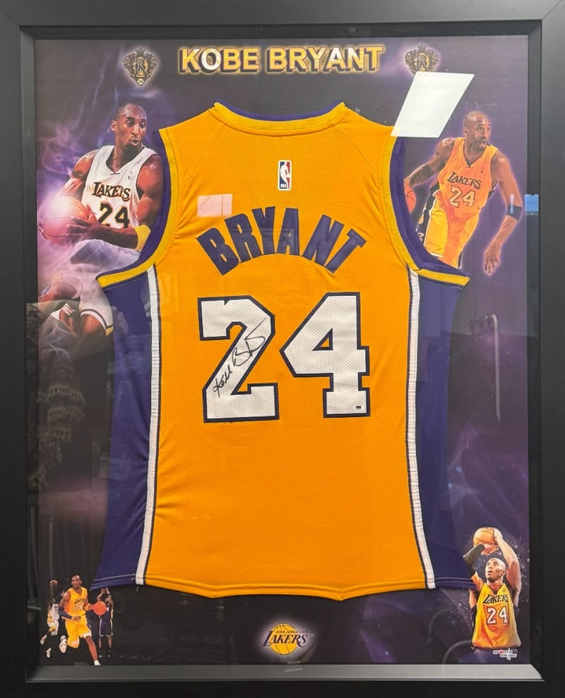 KOBE BRYANT HAND SIGNED LA LAKERS JERSEY FRAMED Item Size: Height: 110cm, Width: 90cm Includes Certificate Of Authenticity Condition: Good - Refer To Images 488276+1