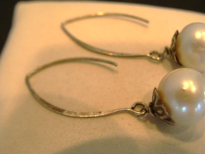 NATURAL SOUTH SEA PEARL & STERLING SILVER 925 EARRINGS.645152+9