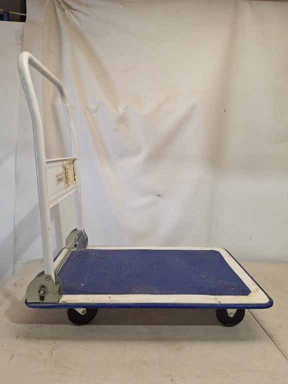Folding Platform Trolley, 4 Wheels, Metal Style, White & Blue Finish Dimensions H:78cm W:47cm D:72cm