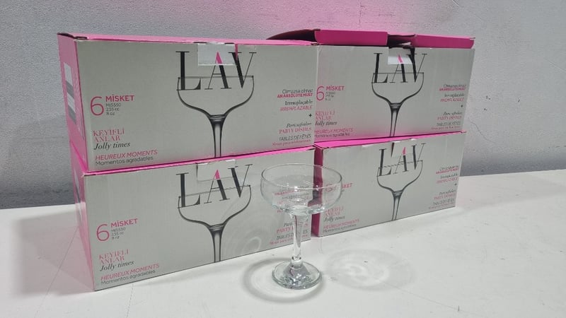 Cocktail Glasses, new in box, 6 per box, total quantity 4 x boxesSold As Lot