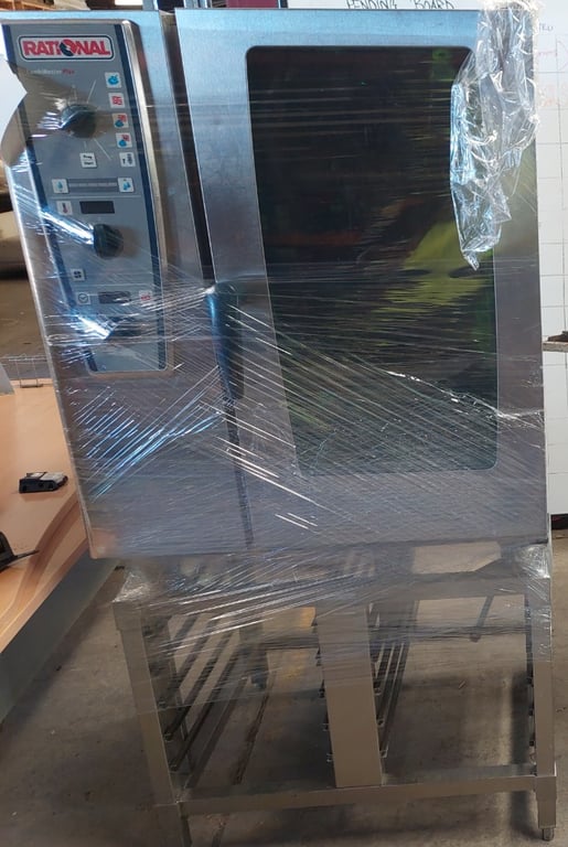 Rational combi oven with an UltraVent hood,functions of a convection oven and a steam cooker, allowing for various cooking methods like roasting, baking, and steaming. Note: Untested/Signs of wear/tear