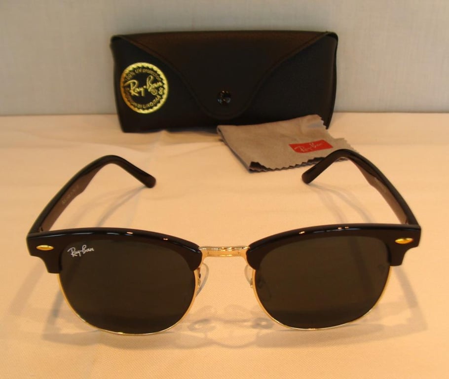 RAY BAN SUNGLASSES RB3016 CLUBMASTER MADE IN ITALY WITH RAY BAN CASE & CLEANING CLOTH.645152+6