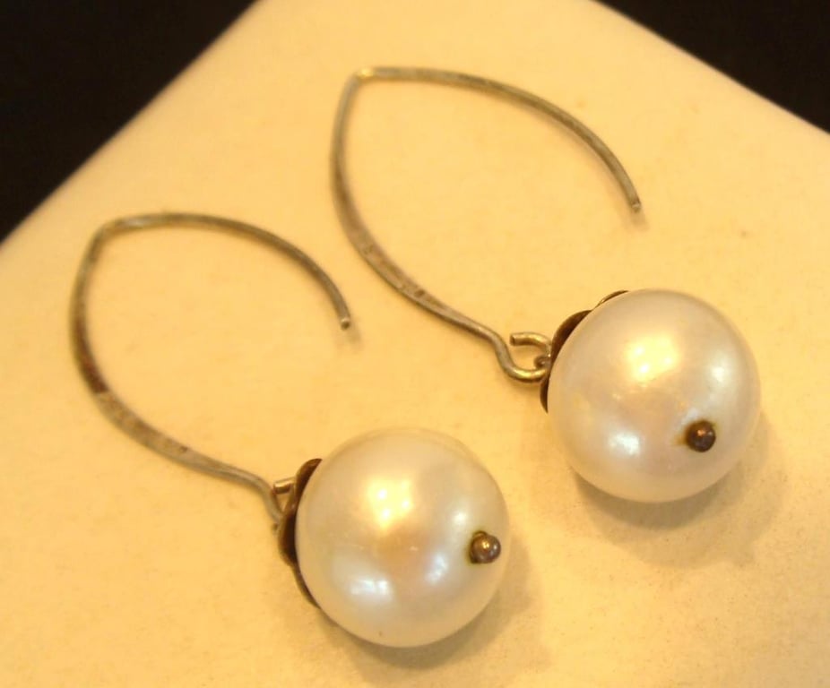 NATURAL SOUTH SEA PEARL & STERLING SILVER 925 EARRINGS.645152+9