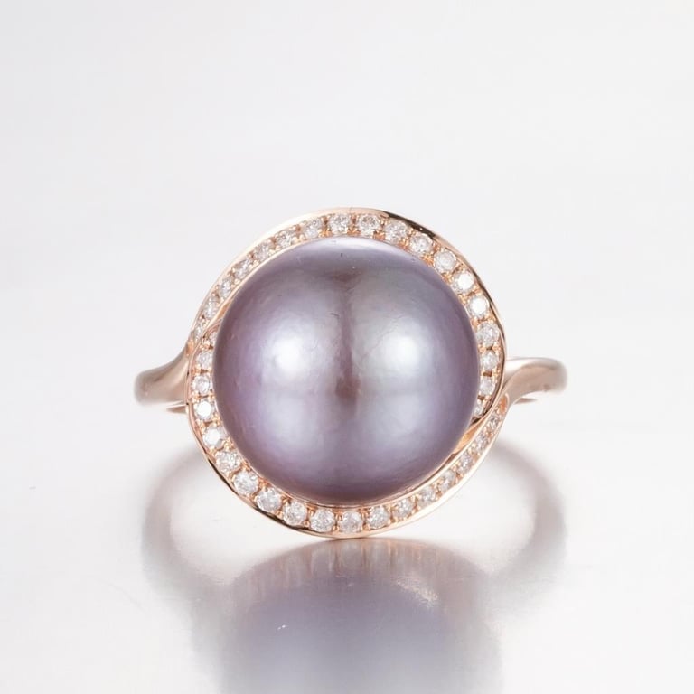 14CT ROSE GOLD PEARL AND DIAMOND HALO RING . Featuring Centre, One Round, Silvery-Purple Cultured Pearl (12.35Mm-12.55Mm Size, Aa Grade), Drill Set, With 36 Round Brilliant Cut Diamonds (0.24Ct Tdw, G-H Colour, Vs1-Vs2 Clarity), Bead Set. Ring Size O. Valuations Provided by an Independent Third-Party Professional Not Directly Associated With Lloyds Auctions at AUD $12500This valuation has been conducted by an independent third-party professional. The valuation amount is an assessment by the issuing valuer and does not reflect the auction value of the item. Any inquiries regarding the valuation should be directed to the issuing valuer (refer to contact details on the certificate), as Lloyds Auctions has no affiliation or influence over the valuation, the valuer, or the stated amount. Condition: Good - Refer Images 0586115+1279
