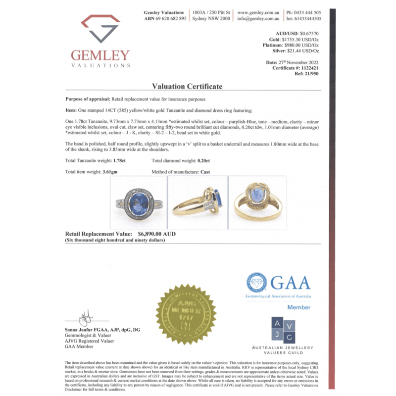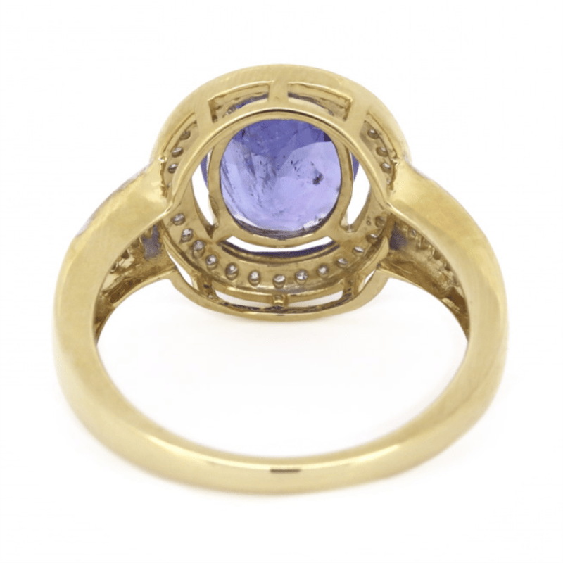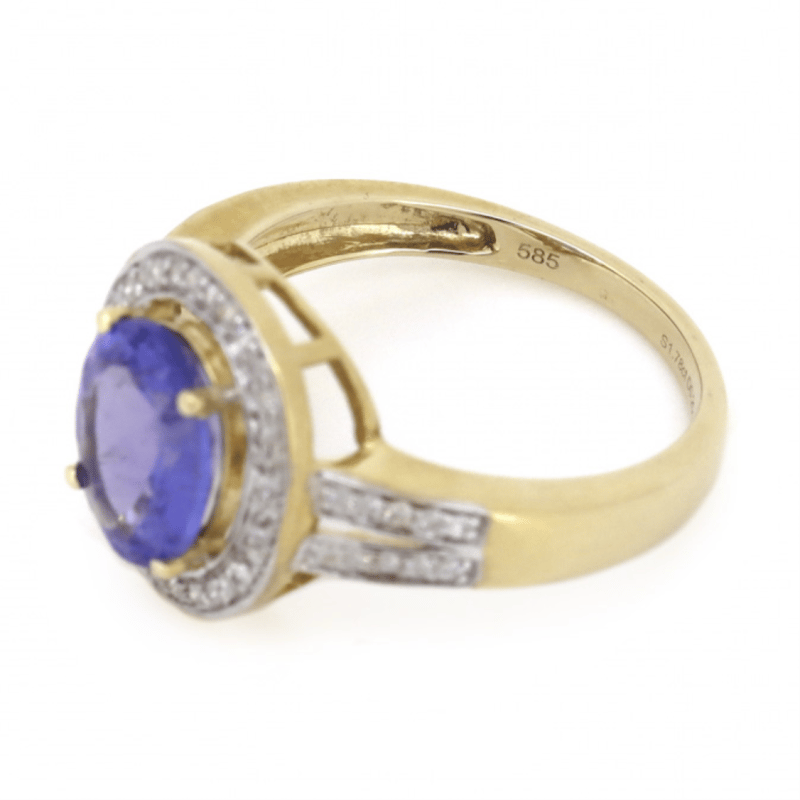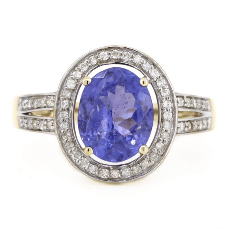 14K YELLOW GOLD, TANZANITE AND DIAMOND, HALO SPLIT BAND RING. The Centre Features, One Oval Cut, Purplish-Blue, Tanzanite (1.78Ct, Minor Eye Visible Inclusions), 4 Claw Set. Surrounding The Centre In A Halo And Decorating The Split Band Are, 52 Round Brilliant Cut, Diamonds (0.20Ct Tdw, J-K Colour, Si2-I2 Clarity), Bead Set In White Gold. Ring Size O 1/2. Valuations Provided by an Independent Third-Party Professional Not Directly Associated With Lloyds Auctions at AUD $$6,890.00This valuation has been conducted by an independent third-party professional. The valuation amount is an assessment by the issuing valuer and does not reflect the auction value of the item. Any inquiries regarding the valuation should be directed to the issuing valuer (refer to contact details on the certificate), as Lloyds Auctions has no affiliation or influence over the valuation, the valuer, or the stated amount. Condition: Good - Refer Images 0645845+1523