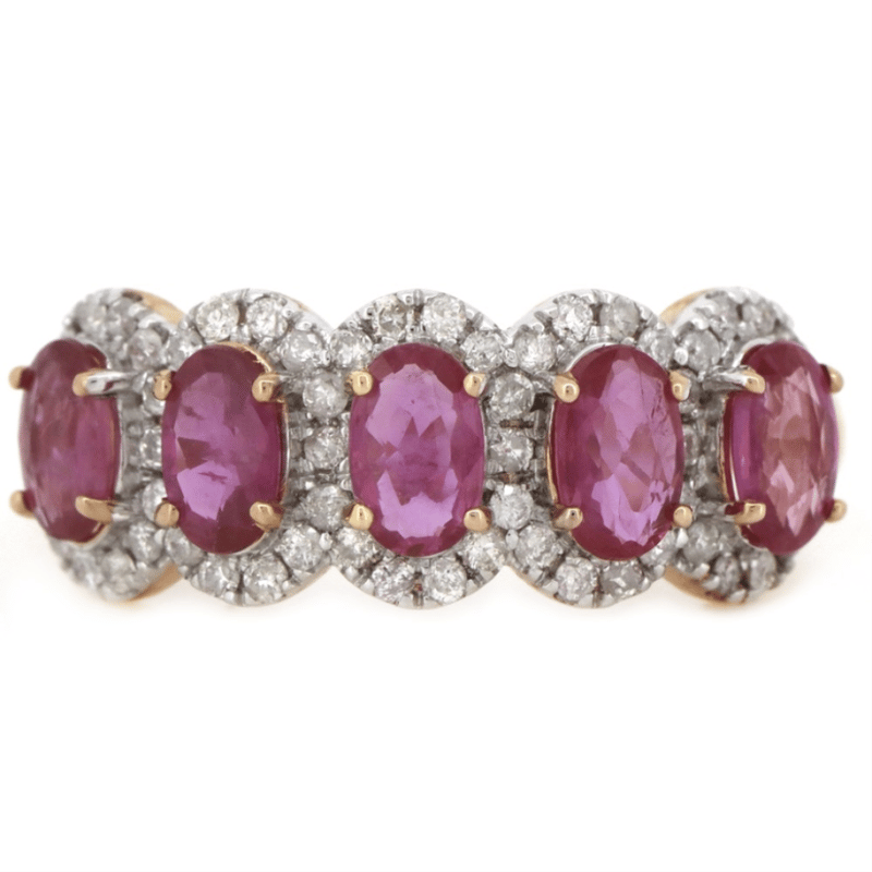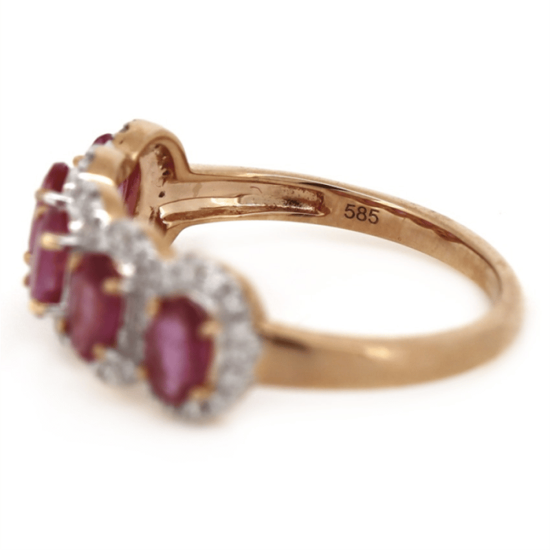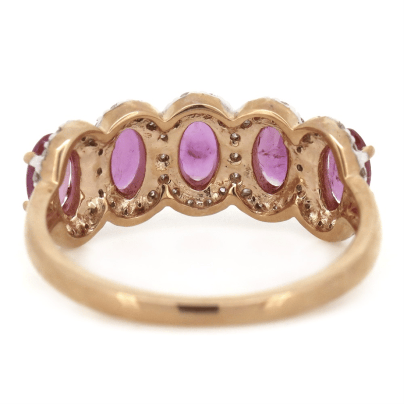 14K ROSE GOLD, PINK SAPPHIRE AND DIAMOND, INFINITY RING. The Central Design Features, 5 Oval Cut, Medium Reddish-Pink, Sapphires (1.47Ct Tsw, Minor Eye Visible Inclusions), 4 Claw Set. Surrounding The Stones In Semi-Halos Are, 58 Round Brilliant Cut, Diamonds (0.29Ct Tdw, J-K Colour, Si2-I2 Clarity), Micro-Claw Set In White Gold. Ring Size M. Valuations Provided by an Independent Third-Party Professional Not Directly Associated With Lloyds Auctions at AUD $$5,980.00This valuation has been conducted by an independent third-party professional. The valuation amount is an assessment by the issuing valuer and does not reflect the auction value of the item. Any inquiries regarding the valuation should be directed to the issuing valuer (refer to contact details on the certificate), as Lloyds Auctions has no affiliation or influence over the valuation, the valuer, or the stated amount. Condition: Good - Refer Images 0645845+1562