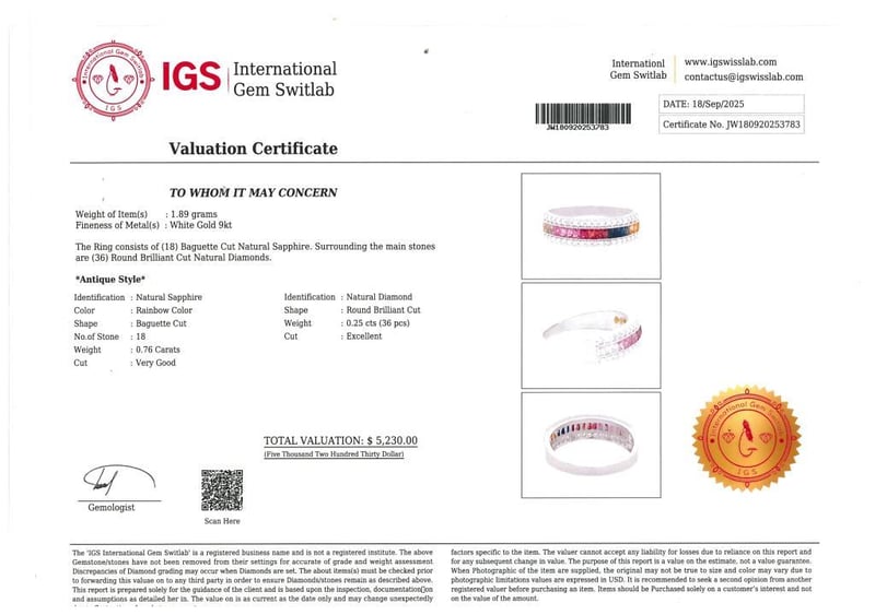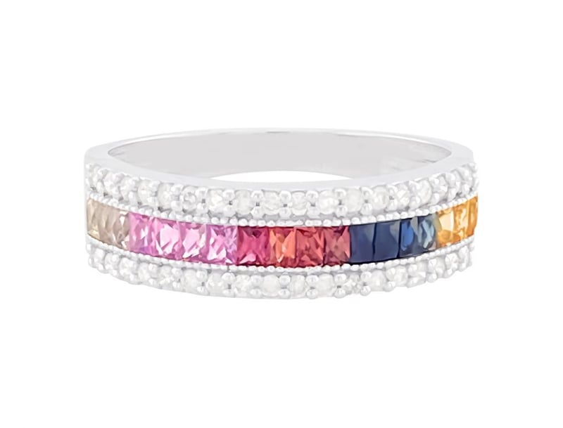 9CT WHITE GOLD DIAMND AND RAINBOW SAPPHIRE RING Date : 11/09/2025 Category: Ring Comment: 9Kwg Natural : Diamond 0.25 Ct (36Pcs) Natural :Rainbow Sapphire 0.76Ct (18Pcs) Item Weight : 1.89 G Condition: Good - Refer Images 253783488284+253783