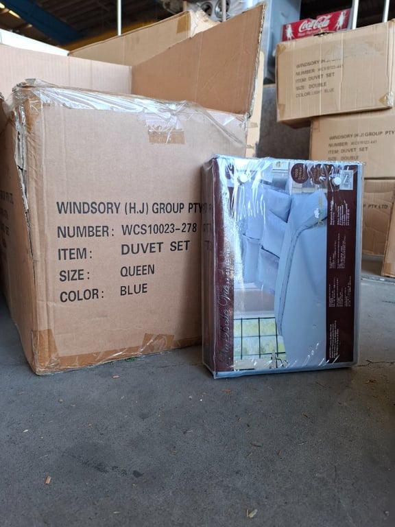 Box of Box of Double Bed Duvet Setss, Product Code: WCS10023-278 Includes One Cover and 2 Standard Pillow Cases, Colour: Blue, Stone