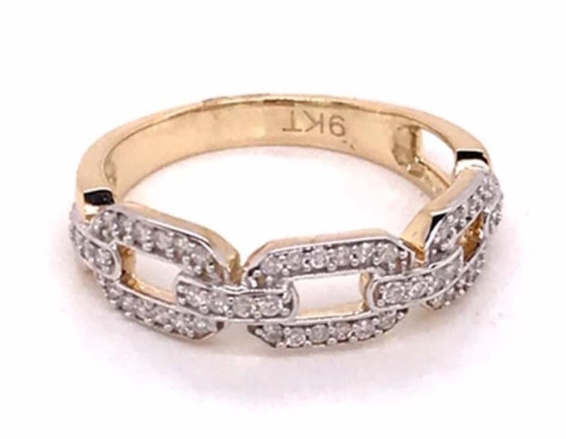 9K TWO TONE GOLD CHAIN RING Total Item Weight: 2.9gms 52D=0.26Ct 9K 2T Diamond Chain Ring Set With 52D=0.26Ct Size M. Markings: 9K / 375 Jewellery Valuations Provided By A Third Party Professional Not Directly Associated With Lloyds Auctions at AUD $1860This Insurance Valuation has been provided by a registered Jewellery Valuer and is intended for insurance purposes only. The valuation amount has no bearing on the auction value of the item. Any questions regarding the valuation should be directed to the issuing Valuer (refer to contact details on the certificate) as Lloyds have no association or relationship with the Valuer or the valuation amount contained within the valuation. Condition: Good - Refer Images 0162965+19Crossdock