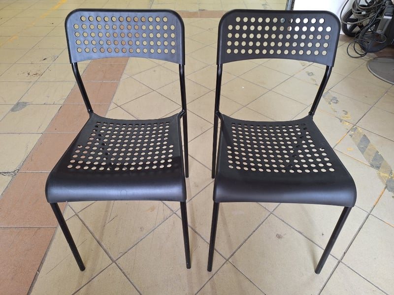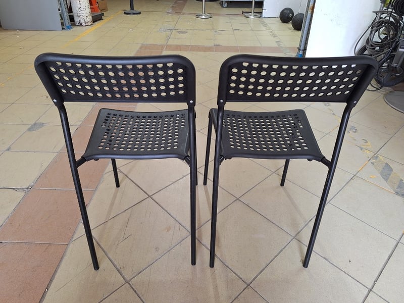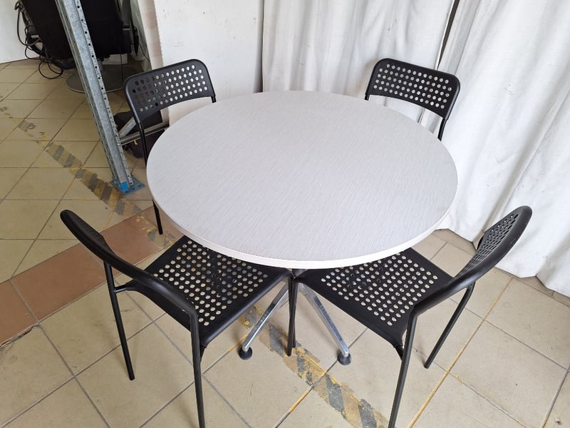 4 Seater Dining table, Timber & Metal Style, Black & White FinishDimensions Chair H:77cm W:38cm D:46cmDimensions Table H:73cm W:90cm D:90cmSOLD AS LOT