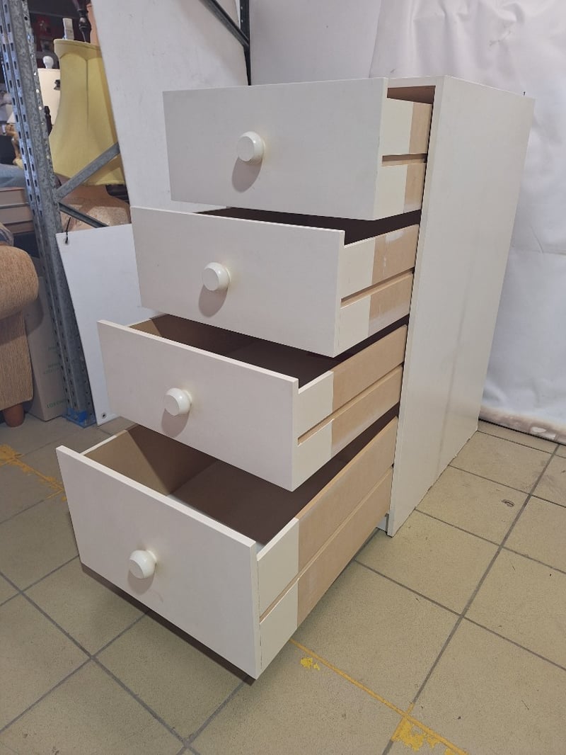 Chest Drawer, 4 Deep Drawers, Timber, White FinishDimensions: H 121cm x W 61cm x D 85cm.