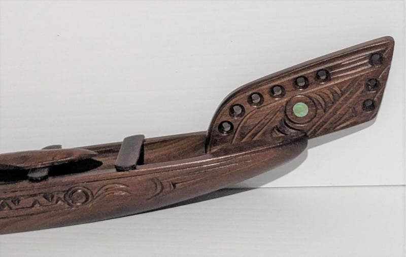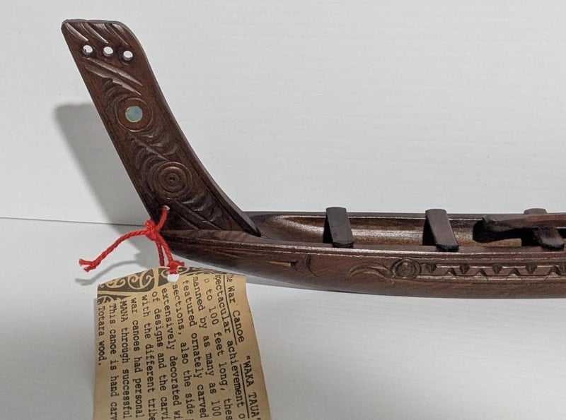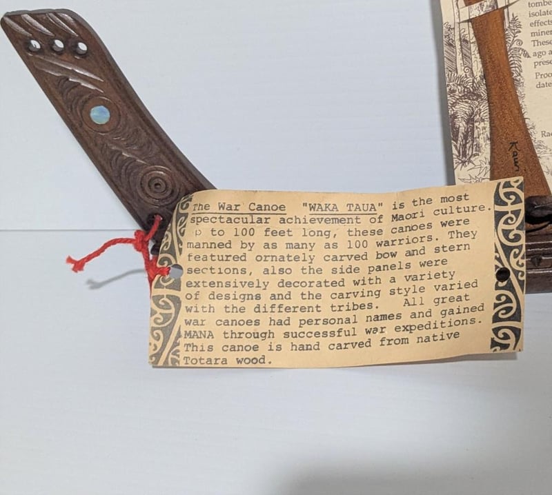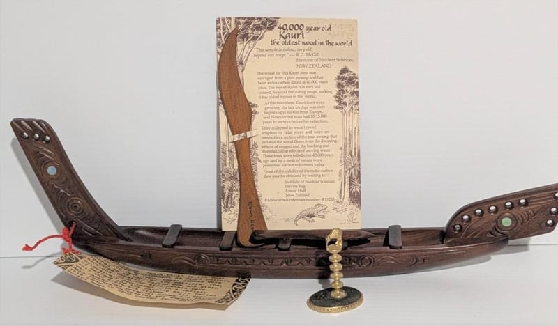 NEW ZEALAND WAR CANOE, KAURI WOOD KNIFE & KIWI PAPER WEIGHT