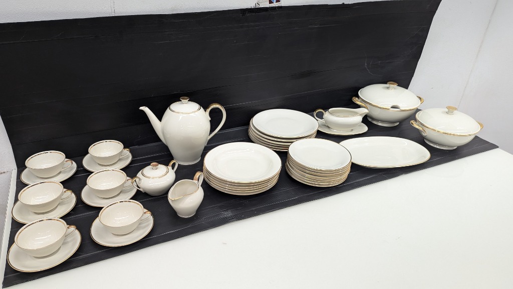 Six Piece Dinner Set, Bavaria - Elfenbein Porzellan, Germany, With Gold Trim, Includes Dinner and Side Plates, Bowls, Tea Set and More,
