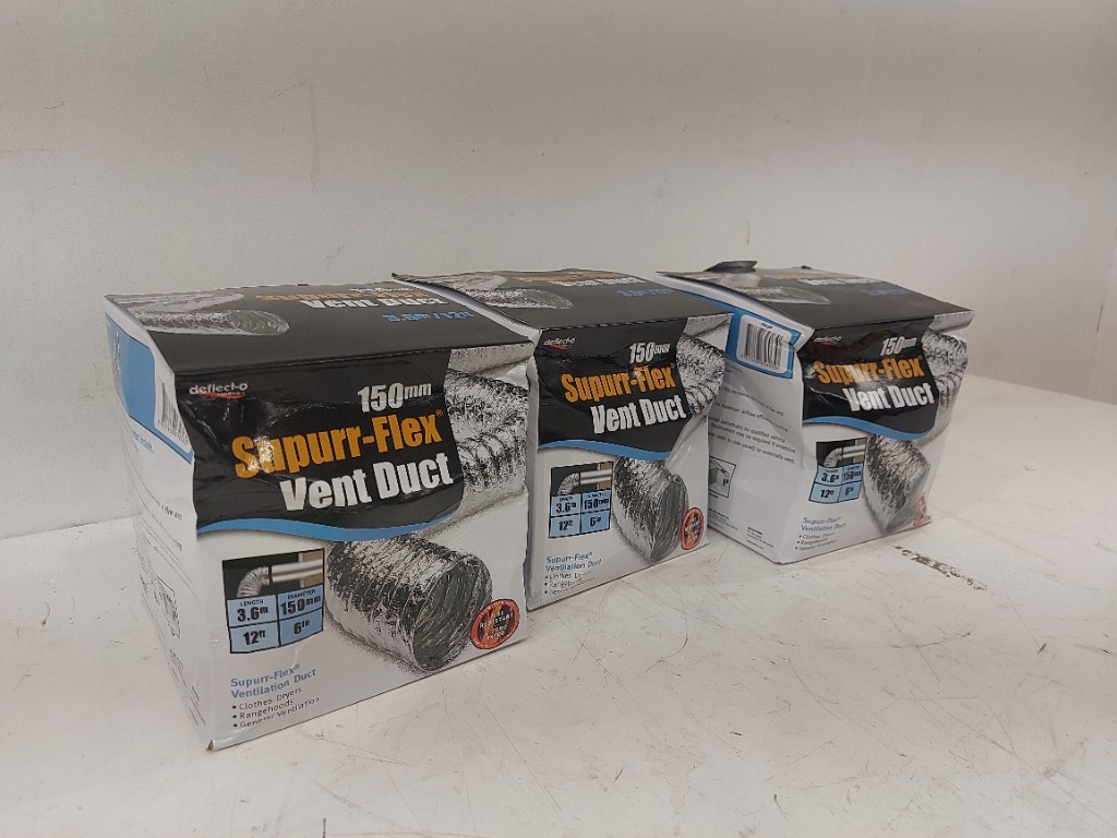 Super-Flex, Vent Duct, 150mm, Deflect-o, 3.6mm/12ft, Quantity 3Sold As Lot
