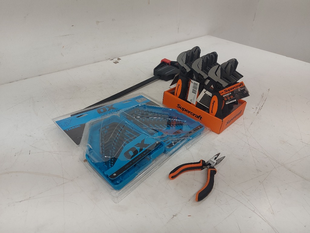 Assorted Tool Lot Includes, OX Hex Key Set, Supercraft Wrench, Plyers, And More, Quantity As LotSold As Lot