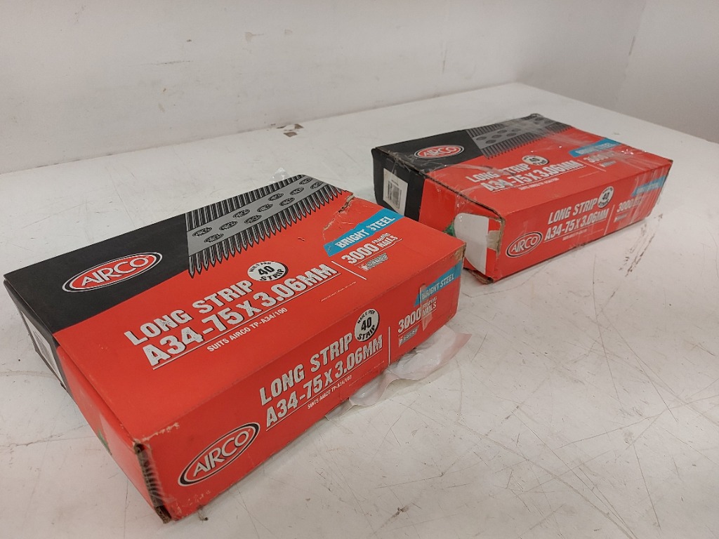 Long Strip, A34-75×3.06MM, Airco, 3000 Framing Nails, Bright Steel, Quantity 2,