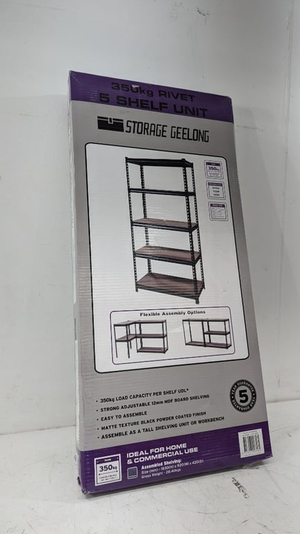 5 Shelf Storage Unit, Storage Geelong, Part No: PCRM3505, 350kg Shelf Capacity, MDF Board Shelving