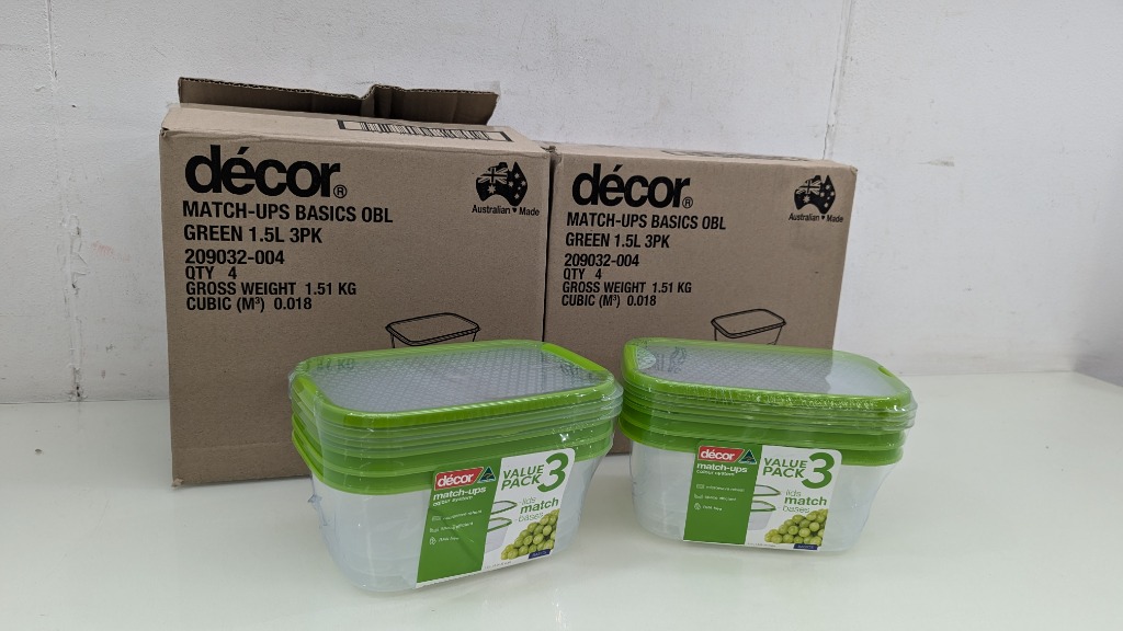 Decor Match Ups Basics OBL, 1.5 Litre, Colour Clear/Green, 3 Per Pack, Quantity 8Sold As Lot