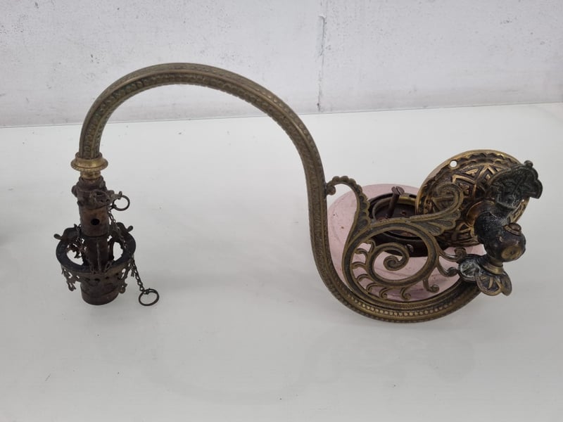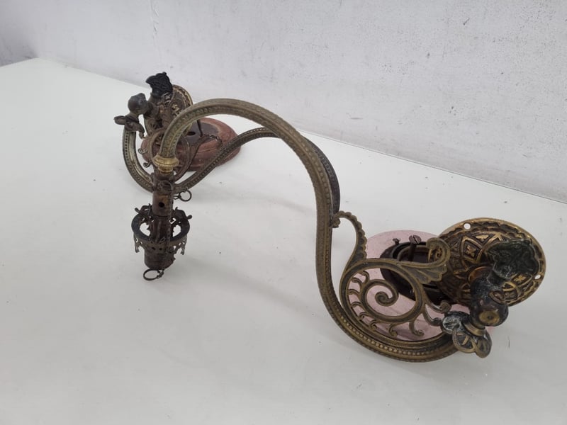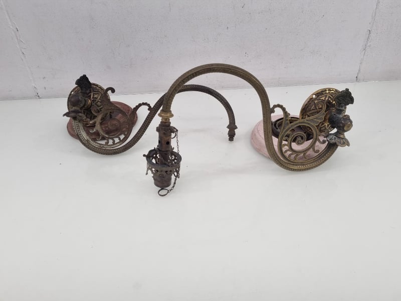 Antique Brass Gas Lights, Circa Early 1900's Some Parts Missing.Sold as Pair