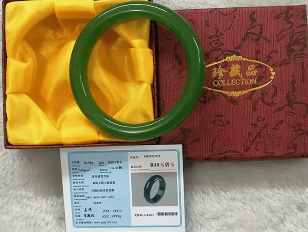 GREEN JADEITE BANGLE IN BOX WITH CERTIFICATE Condition: Good - Refer Images 0162946+50FC