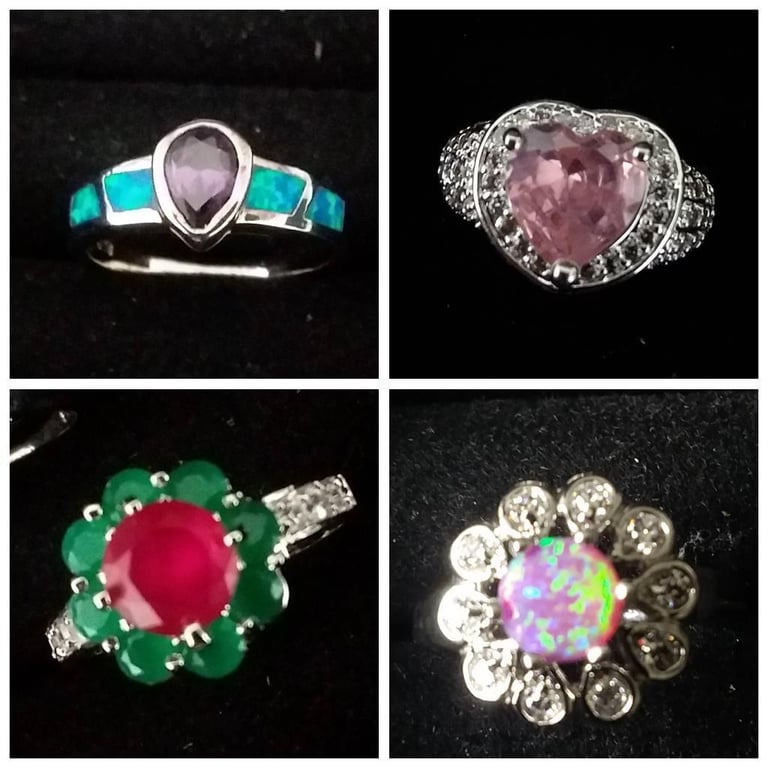 4 X 925 SILVER RINGS CREATED FIRE OPAL WITH CRYSTALS Condition: Good - Refer Images 0162946+9FC
