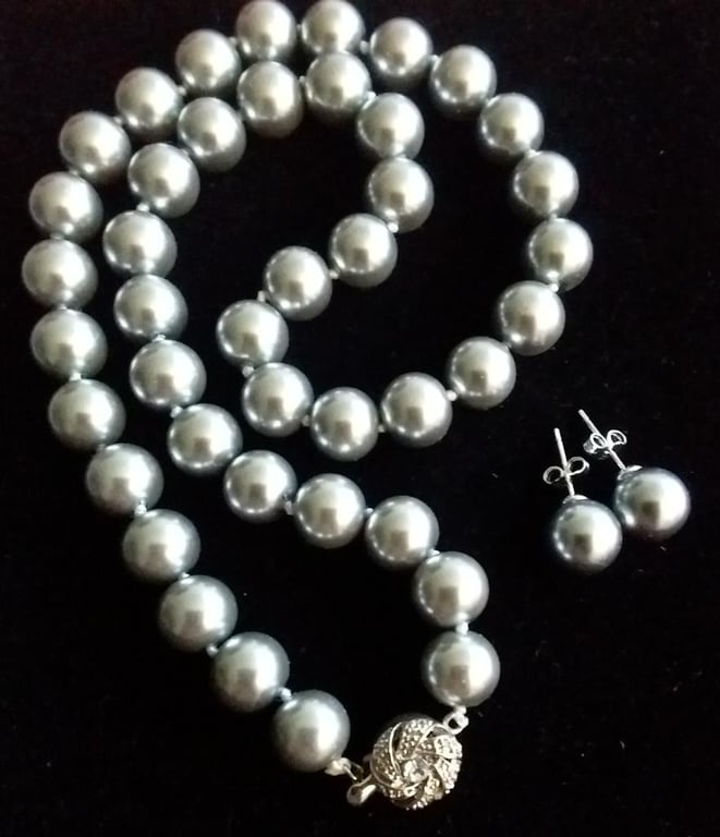 SILVER GREY SOUTH SEA SHELL PEARL NECKLACE WITH STUD EARRINGS Condition: Good - Refer Images 0162946+15FC