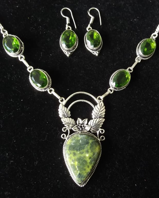 925 SILVER PLATED GEMSTONE NECKLACE AND EARRINGS SET Condition: Good - Refer Images 0162946+32FC