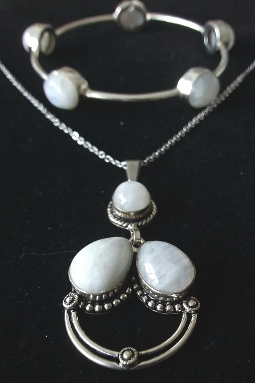 925 SILVER PLATED MOONSTONE BANGLE AND NECKLACE Condition: Good - Refer Images 0162946+36FC
