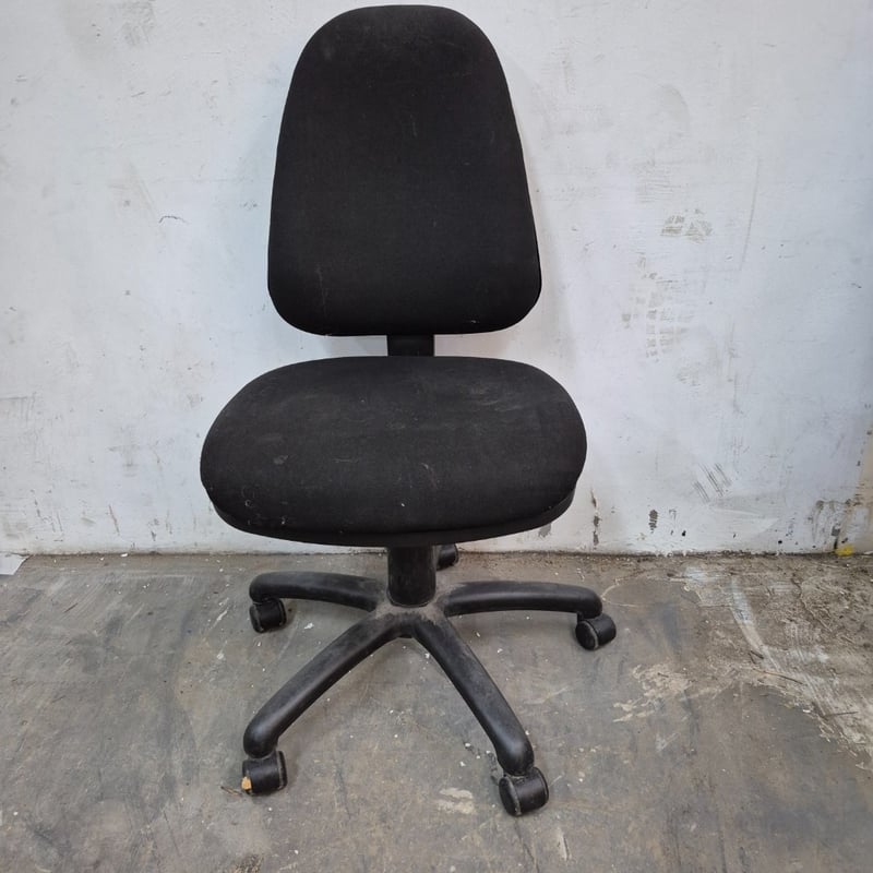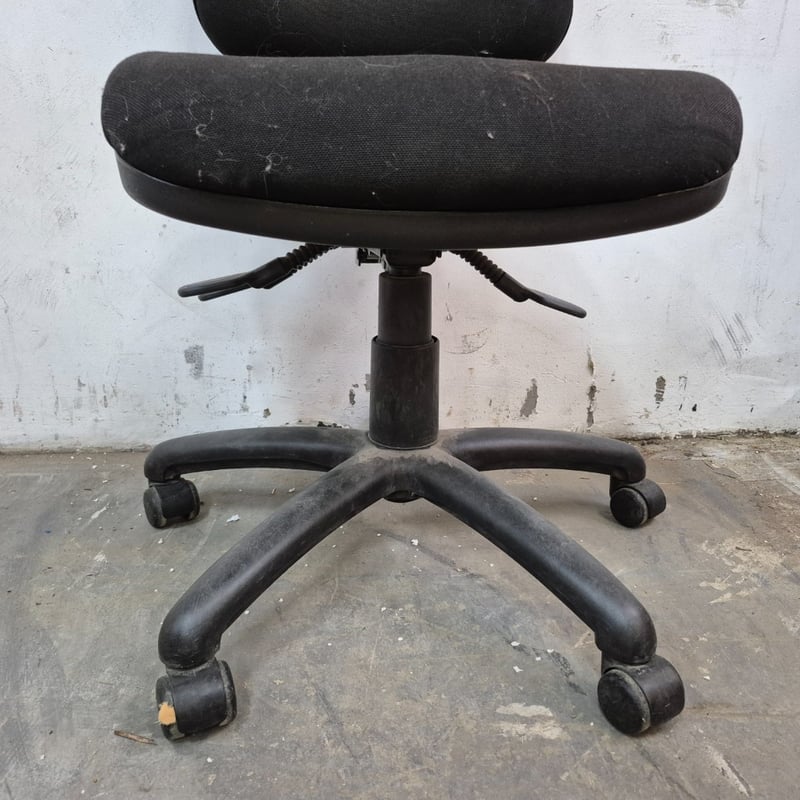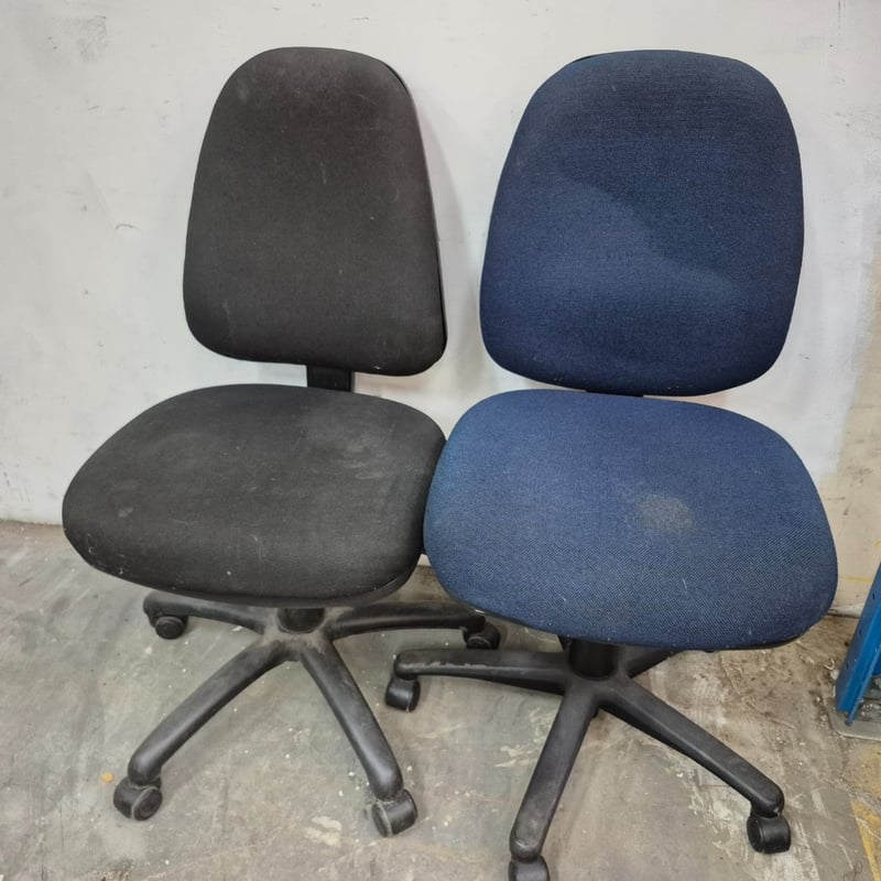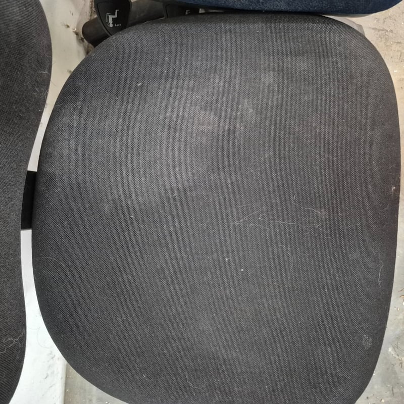 2 x swivel chair, adjustable height lever, wheels, cushion seats and back supportSlight marks on both. Rough Dimensions: H 125cm x 75cm x D 75cmSOLD AS LOT