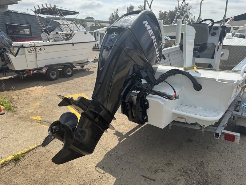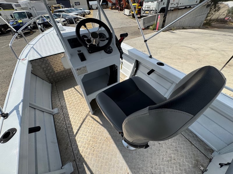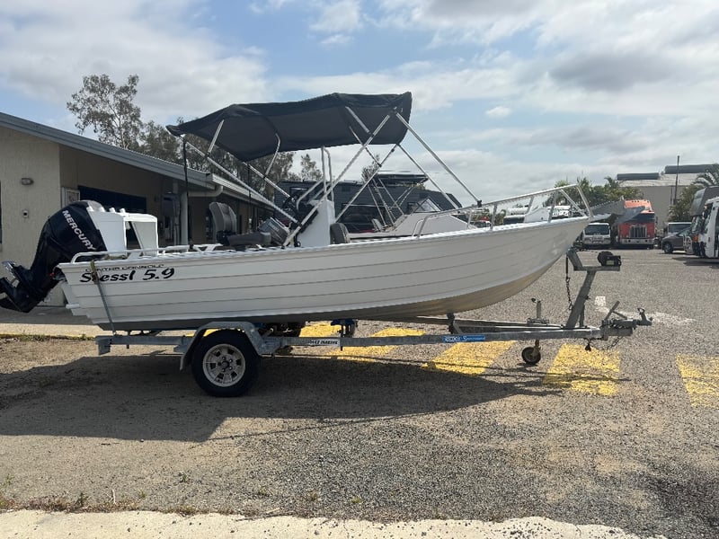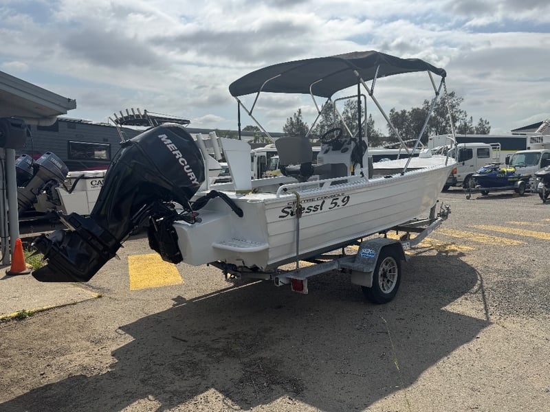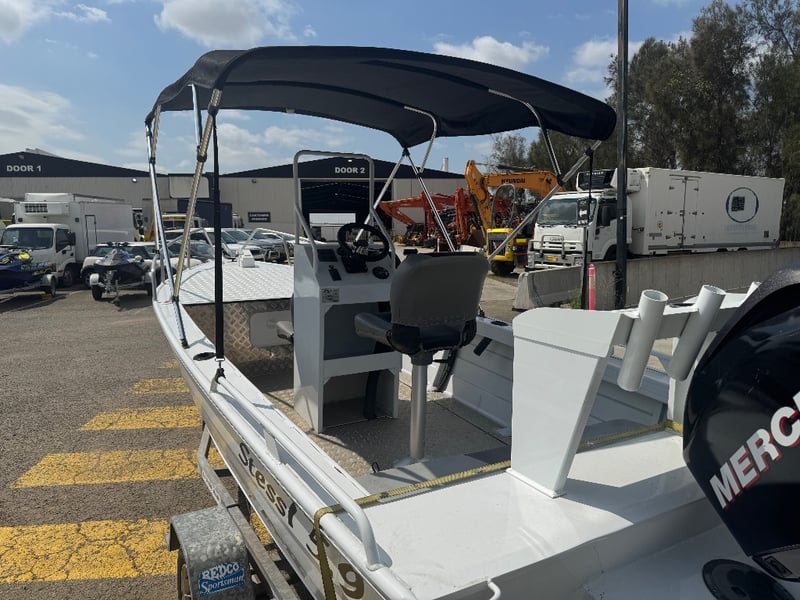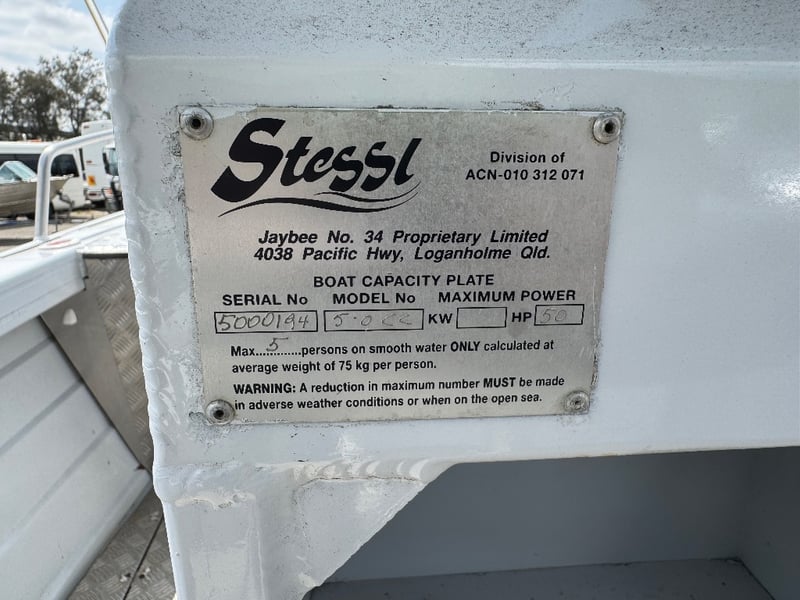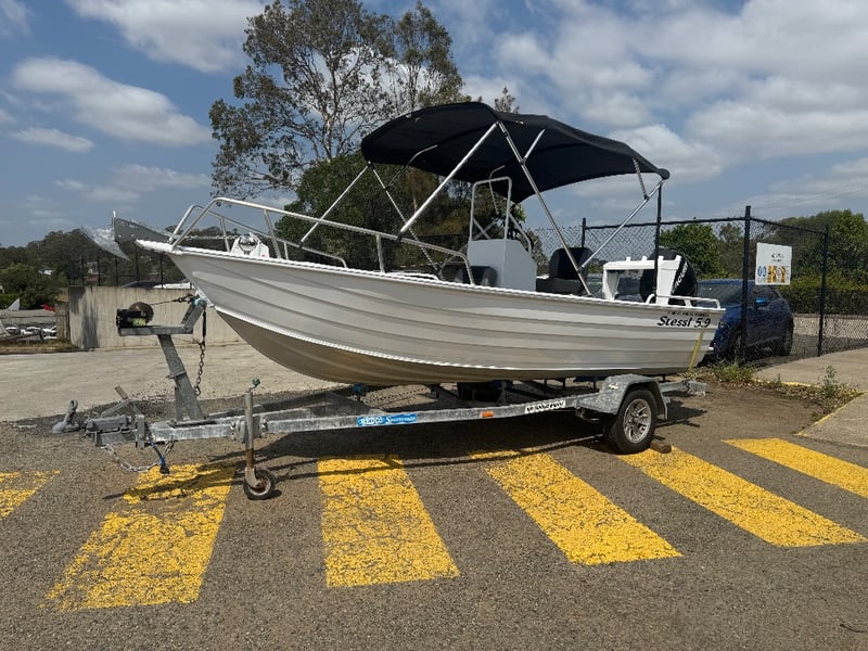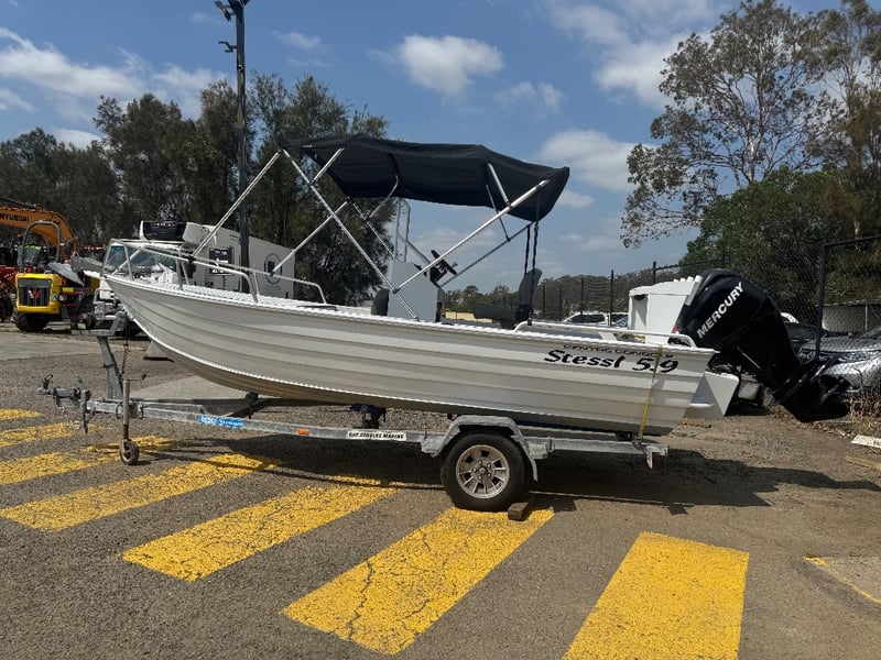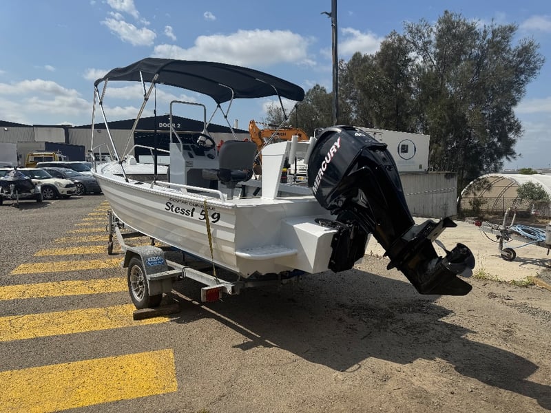 2010 Stessl 5.9m Centre Console Boat And Trailer Year: 2010 Make: Stessl Model: 5.9CC Body: Centre console Hull Material: Aluminium Capacity: 5 Colour: White Engine: Mercury Engine Model: EFI 4 stroke Engine no: DSM 3 3418-822865-002 Engine Hours Indicating: 293 hours Description: Fully restored/ painted in white marine 2pack, Full aluminium floor and ribbing, New Casting Deck with underneath stainless steel fuel tank (140ltrs approximately) Brand new fuel filter and water separator, Brand new battery, Electric anchor winch. Safety equipment: 3 life jackets, Vsheet, Flare Kit, Sand anchor/rope, 2x paddles, Roll of New 50mtr anchor rope. Outboard engine, 4cyl fuel injected, Hydraulic steering, Electric Start/Power tilt and trim, 2 keys, Fully serviced, all new oils and new fuel injector pump. Note: Minor dent on rear pod. Total length on trailer: 5.9m Trailer width: 2.2m HIN: 5000194 Vessel length: 5.4m ON A TRAILER: Year: 2006 Make: Mayfair Marine Model: 2000 Body: Trailer Configuration: Single axle Suspension: Leaf Springs Description: Chassis No.: 6H4RE151305MB0614 ATM: 1000kg Tare: 260kg Total length: 5.3m Key # E20 #MMR
