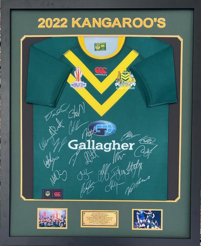 2022 AUSTRALIAN KANGAROOS WORLD CUP PERSONALLY SIGNED JERSEY "2022 WORLD CUP CHAMPIONS"