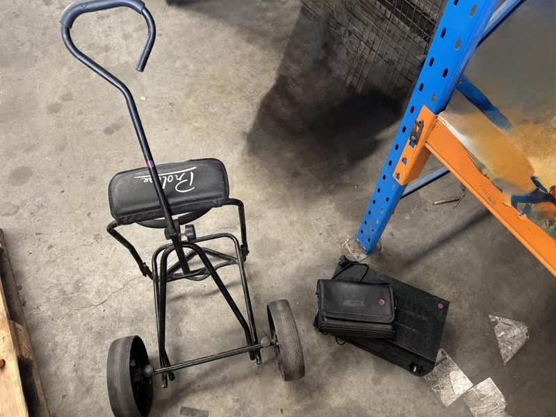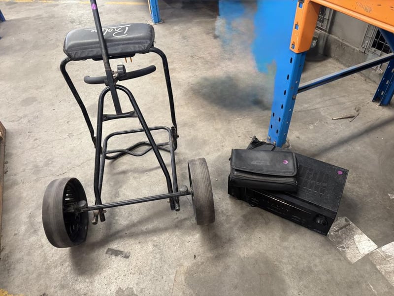 Assortment lot of items includes a Sony digital audio/video controller centre, old Motorola phone and golf trolley Sold as lot
