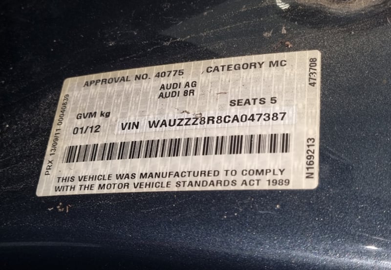 2011 Audi Q5 8R 2.0 TDI quattro (Repaired Write-Off) Year: 2011 Make: Audi Model: Q5 Series: 8R Badge: 2.0 TDI quattro Body: 4-Door SUV Drive Type: All wheel drive Odometer: Indicating 170,441 Kilometers Engine: 2.0 Turbo Diesel Transmission: Automatic Colour: Grey Seats: 5 Description/extras: Air Conditioning, Power windows, SRS, Leather interior, Central locking. Hail Damage throughout - Requires jump start Gearbox mailfunction error Marks , scratches and dents noticed INSPECTION IS HIGHELY ADVISED. Price Guide - $4,150 - $6,150 (Based on Unmodified Vehicle) VIN: WAUZZZ8R8CA047387 ENG No: CGL066452 as per PPSR #PCV #ONETOTEN ACT, 01 Jan 2020, Inspected (Key #25A Marple) Lloyds stock #581827+1