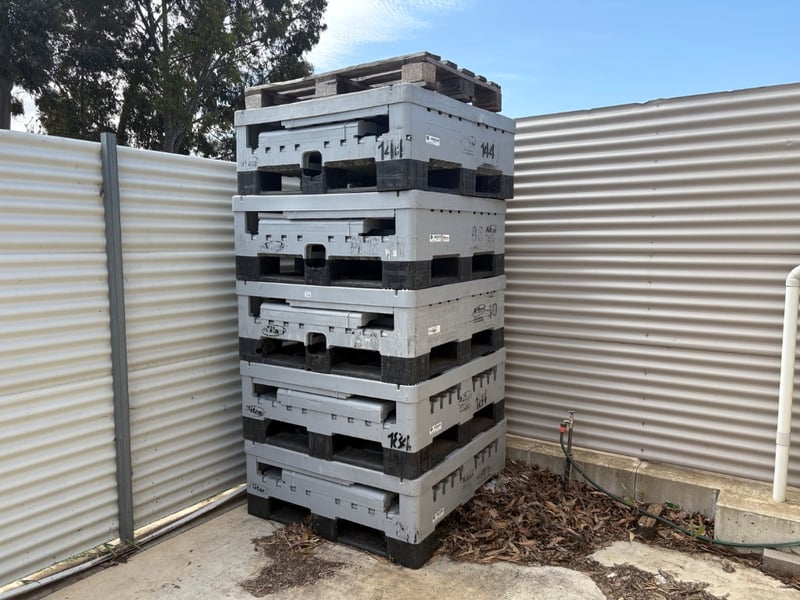 Pallecons, 5x Plastic Collapsible Pallecons.Sold as LotLocation: Mawson Lakes, South Australia Contact: Gage Mackay - 0458 732 549 or [email protected] Inspections: Wednesday 29th 10am - 2pm & Inspections Monday the 3rd 8am - 4pm ** Important Notice to Buyers ** Customers MUST sign in on site for inspections and collections Site safety gear is mandatory for all visitors: this includes a high-visibility top, and steel cap boots. The buyer is fully responsible for the dismantling and decommissioning of any electrical, plumbing and gas components. This work must be carried out by a qualified tradesperson. Buyers must provide their own tools, labor, lifting equipment, and transport to ensure the safe removal of the asset. If required, the buyer must organize a crane or Franna at their own expense. All contractors must carry current insurance and comply with Occupational Health and Safety (OHS) regulations. After asset removal, the site must be left clean and tidy. Inspection is highly recommended prior to purchase and removal.