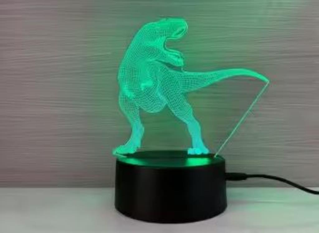 Night Light Children’s 3D Illusion Light 7 Changing Colours Touch Switch Acrylic 20cm-25cm Tall approx. USB Power. (NEW IN BOX) DINOSAUR