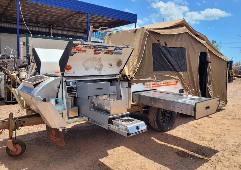 2015 Kimberly KampersYear: 2015Make: Kimberly KampersModel: ClassicBody: Box TrailerTare: 1000kgATM: 1600kgDimensions: 5.50m L 2.20m WDescription/Extras: Double Bed, Under Bed Storage, Solar Panels, Off Roading Pin Hitch, Stove, Sink, Bench Space, Boat Rack and Boat Motor Rack on the Back, FridgeVIN: 6J4TC1412FB006664