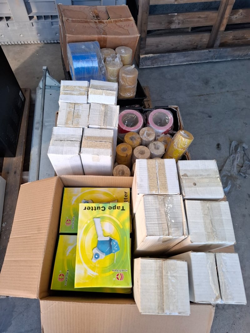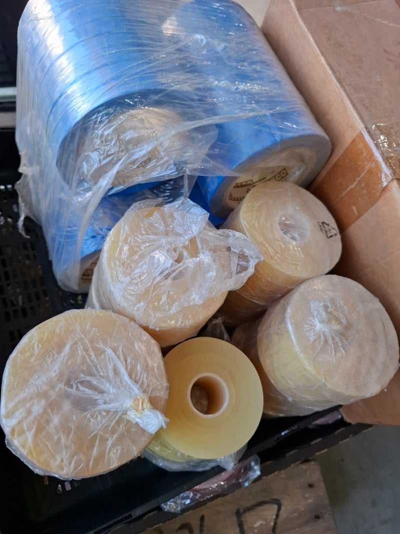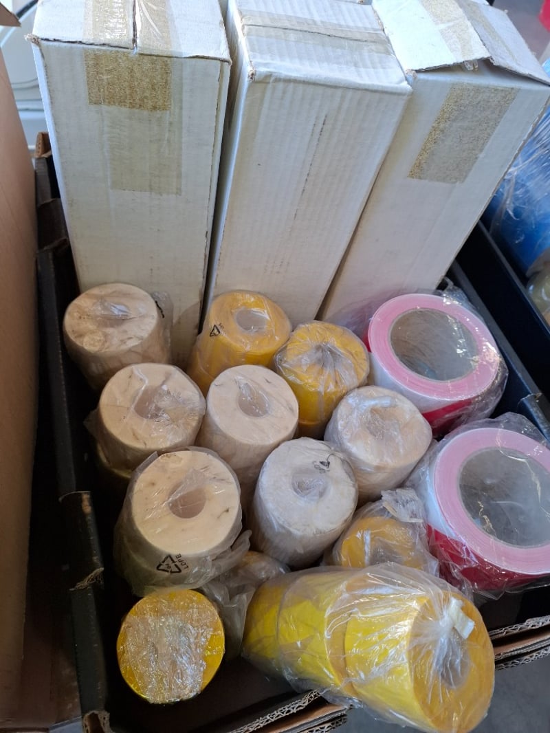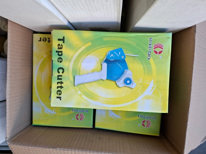 Assortment of packaging materials, Includes tapes different models, tape cutters, wrapping paper and moreSOLD AS LOT