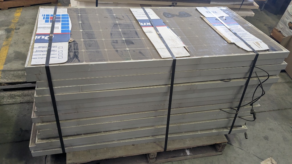 15 Solar panels Dimensions desk : 1580mm(W) x 810mm(D) 50mm(h)SOLD AS LOT