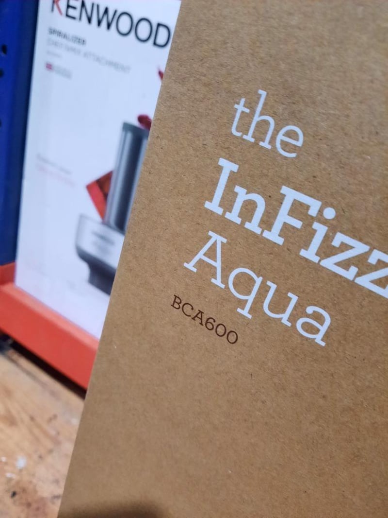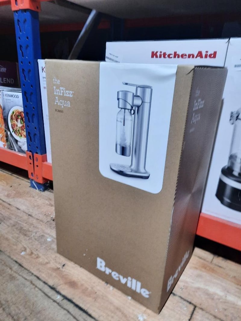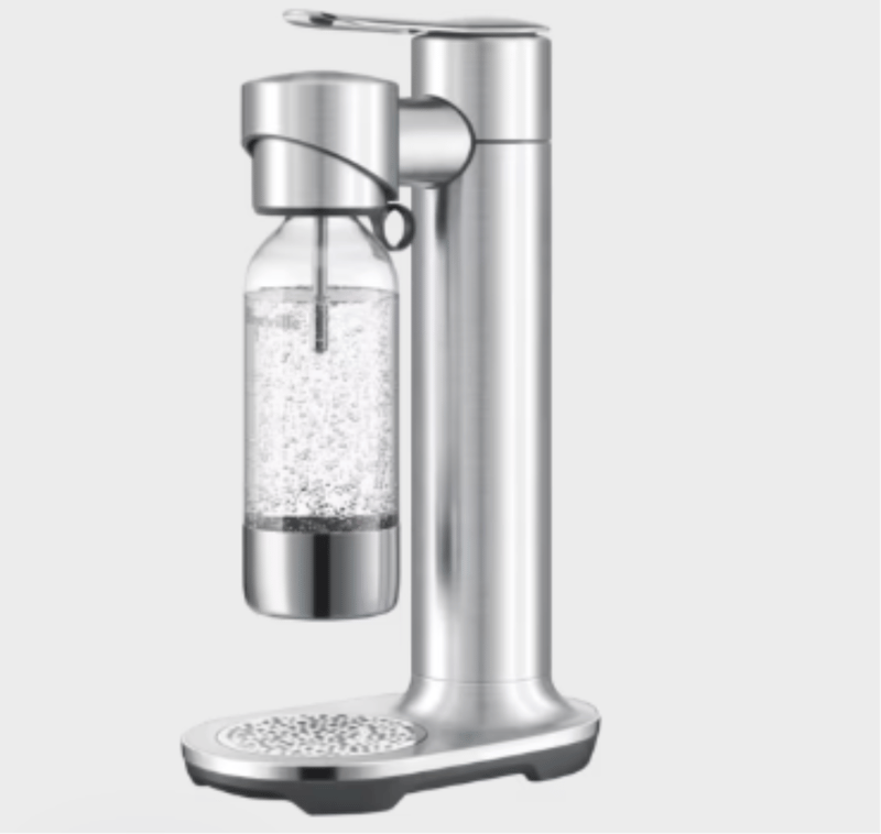 RRP $144, Breville The InFizz Aqua Water Sparkler, Model: BCA600BSS0ZAN1 Bring cafe-style sparkling water to your kitchen with the sleek Breville The InFizz Aqua Water Sparkler. Craft refreshing soda water in seconds with the brushed stainless steel body and convenient ring pull lever. The magnetic drip tray catches any drips for easy cleanup. Simply add water and insert a CO2 canister to carbonate water in the included 1L bottle.